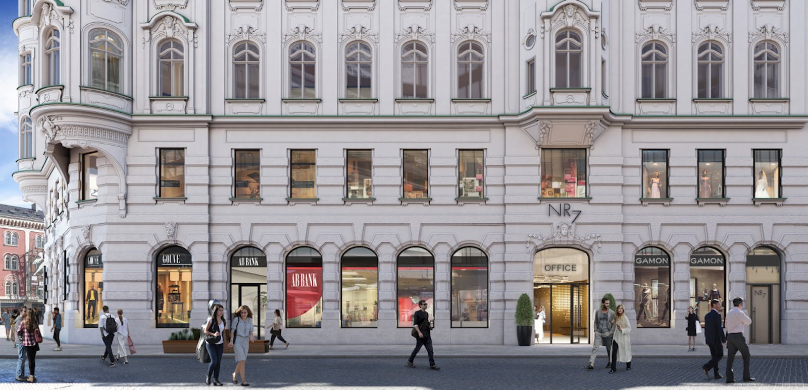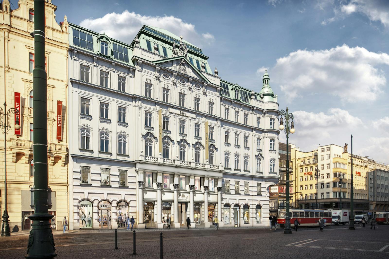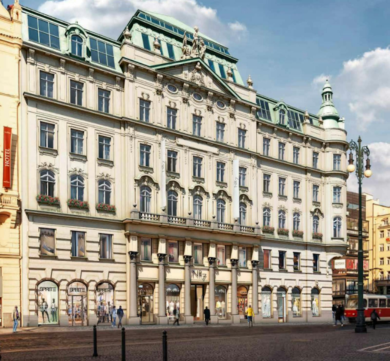A unique historical building in the hearth of Prague was built in 1905 by Adolf Foehr and Alfons Wertmuller (also the architect of the Czech State Opera building) as Allianz insurance company seat, later used also for a bank purposes. A famous Laurin & Klement showroom & service centre was opened in the retail part of the building in 1930. The architectural style of NR 7 is principally neoclassicism, hence the ornate stucco work which is evident on the facade. The top three floors are