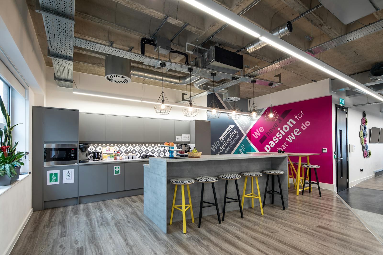 The East Wing benefits from a high-quality occupier fit out with Boardroom, 5 x meeting rooms, open plan office area with kitchen and break out facilities and private office / workshop / store.