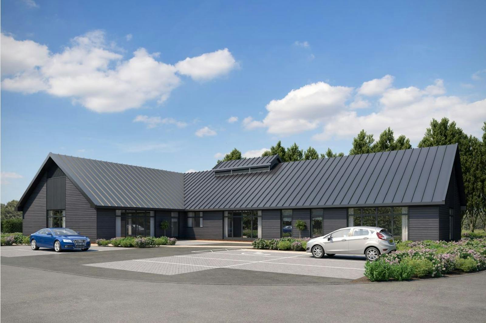 The offices are to be provided with electrics ready for the installation of an EV charging point and the roofs are south facing pitch roofs to allow for future PV installation.