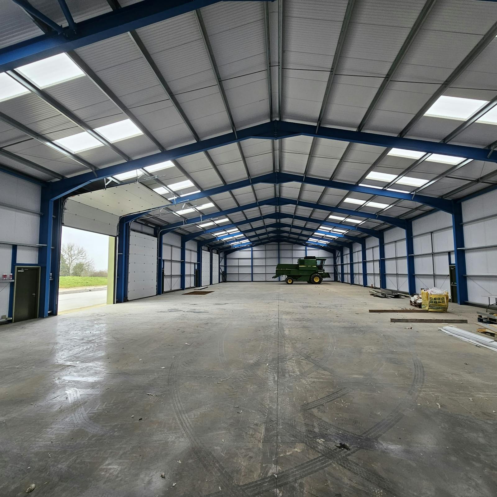 The unit has a steel portal frame, insulated composite cladding, a dual-pitch roof with around 15% rooflights, and four insulated roller shutter, personnel and fire escape doors for easy access. New internal and external LED lighting is installed. It is currently clear span accommodation however, we can erect insulated walls to suit tenant demand. Water and waste has been plumbed at four intersections at the rear and a WC/kitchen can be fitted to suit tenant’s needs. The eaves height is excellent boasting minimum 5.9m and maximum 7.9m.