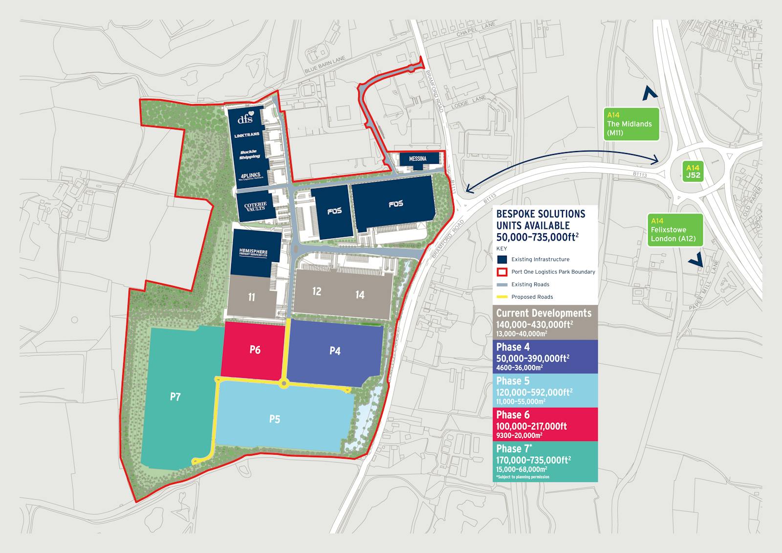 With our prime location within the Freeport East Zone and tailored warehousing solutions, we are set to expand to over 200 million cubic feet of storage capacity. We aim to become the UK’s largest carbon-neutral logistics park with a certified green concrete solution – the largest of its kind in the UK – utilising 2.7 million tons of on-site aggregate. The site will hopefully offer an adjacent hydrogen manufacturing facility for green hydrogen by 2027 and on-site services for commercial electric vehicles. Our goal is to lead the industry in sustainability and innovation, setting new standards