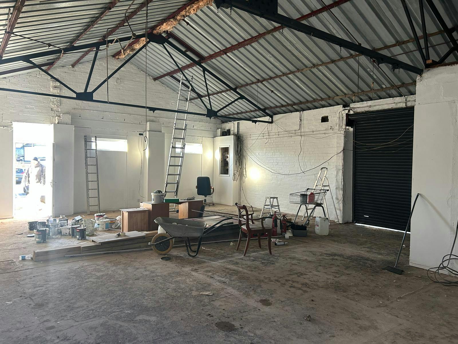 The unit provides a largely open plan layout with generous height, exposed steel trusses and multiple loading/entry points via roller shutter and separate pedestrian access. The space offers a clean and adaptable shell ready for occupier fit out.