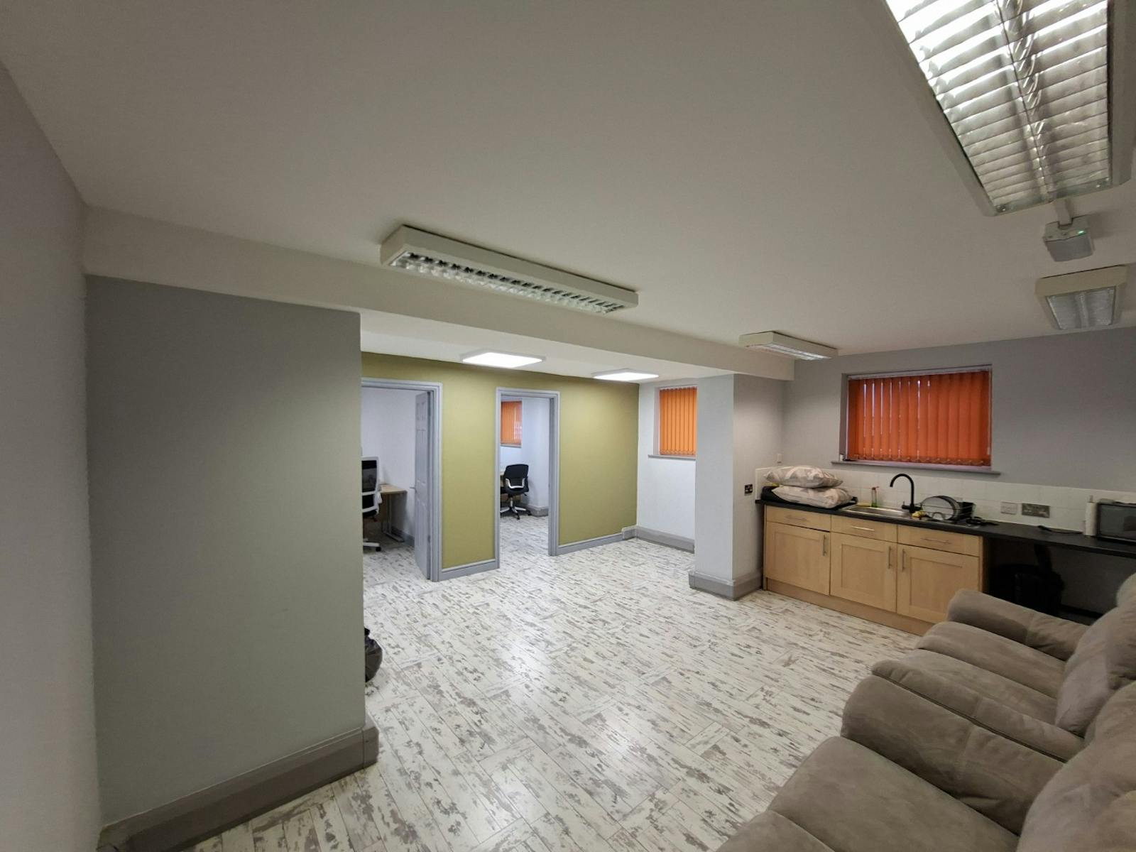 Internally the ground floor is arranged with a reception area and WC facilities with open plan office accommodation. The existing Tenant has separated the space to form separate work areas as well as a kitchen and staff room area. Internal stairs to the first floor are located at each end of the building. The first-floor features open plan office accommodation with high ceilings and exposed beams. There is an additional kitchen area located to the rear of the first floor.