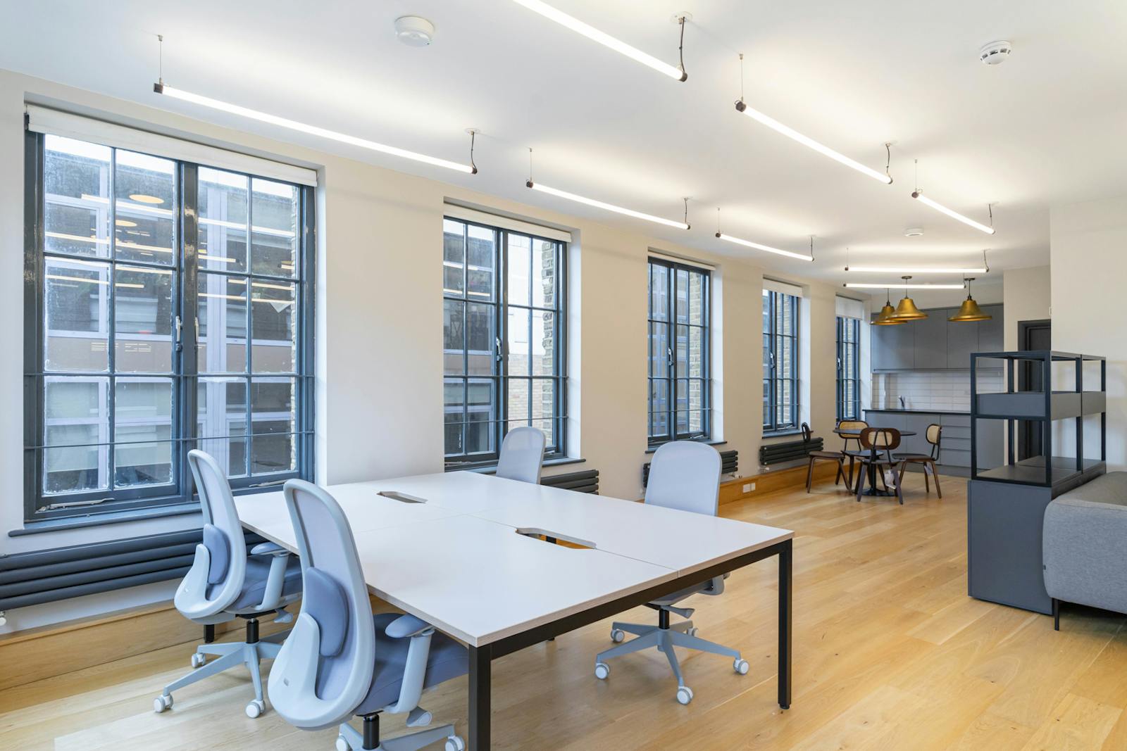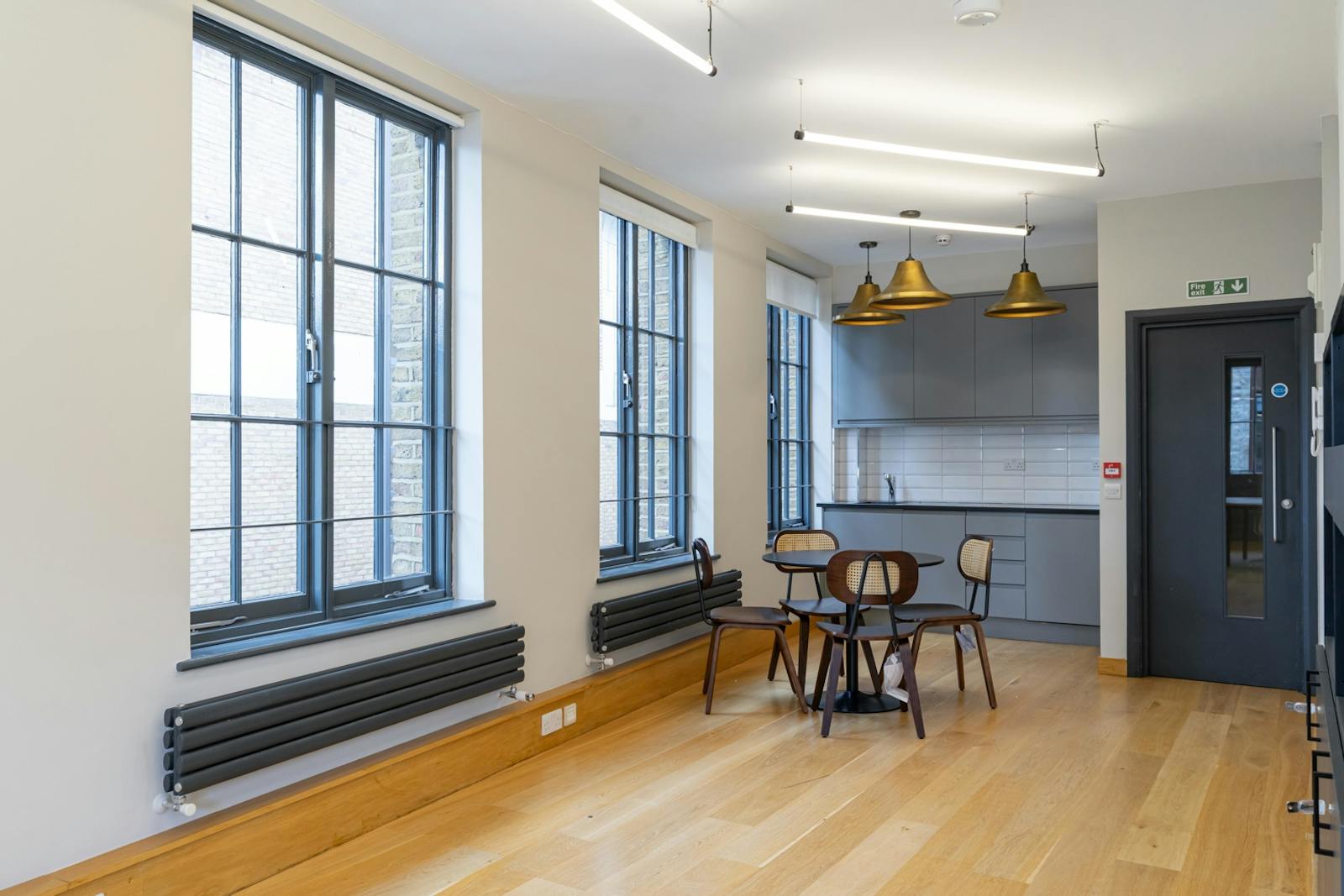A beautiful yellow brick former warehouse building houses refurbished office floors. The floors benefit from open plan layouts benefiting from abundant natural light, modern LED lighting and refurbished kitchenettes.