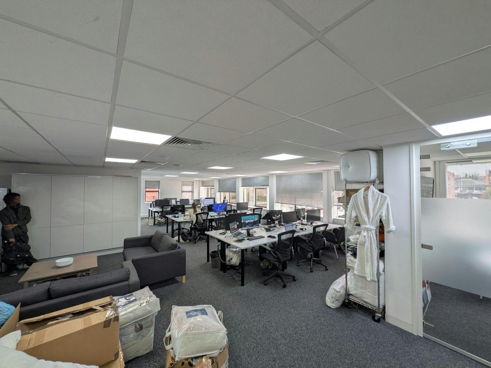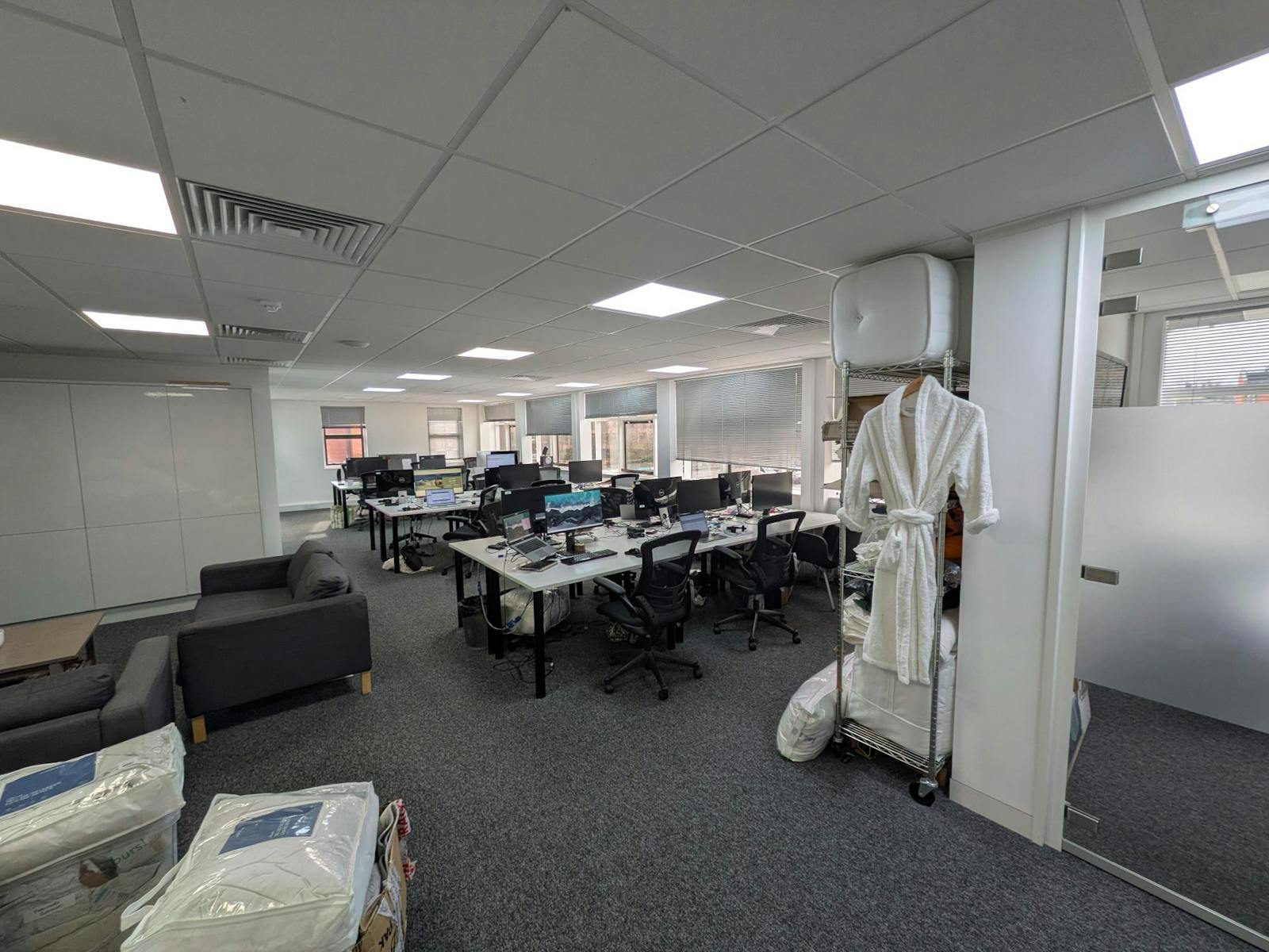 The building itself comes with full lift and stairwell access, leading out to the floor corridor which contains both the shared WC and kitchenette facilities. This square-in-shape office premises has been apportioned according to the current tenants needs, with internal partitions separating out a boardroom, small meeting room and storage areas. These partitions can be kept or removed according to any incoming tenants needs.