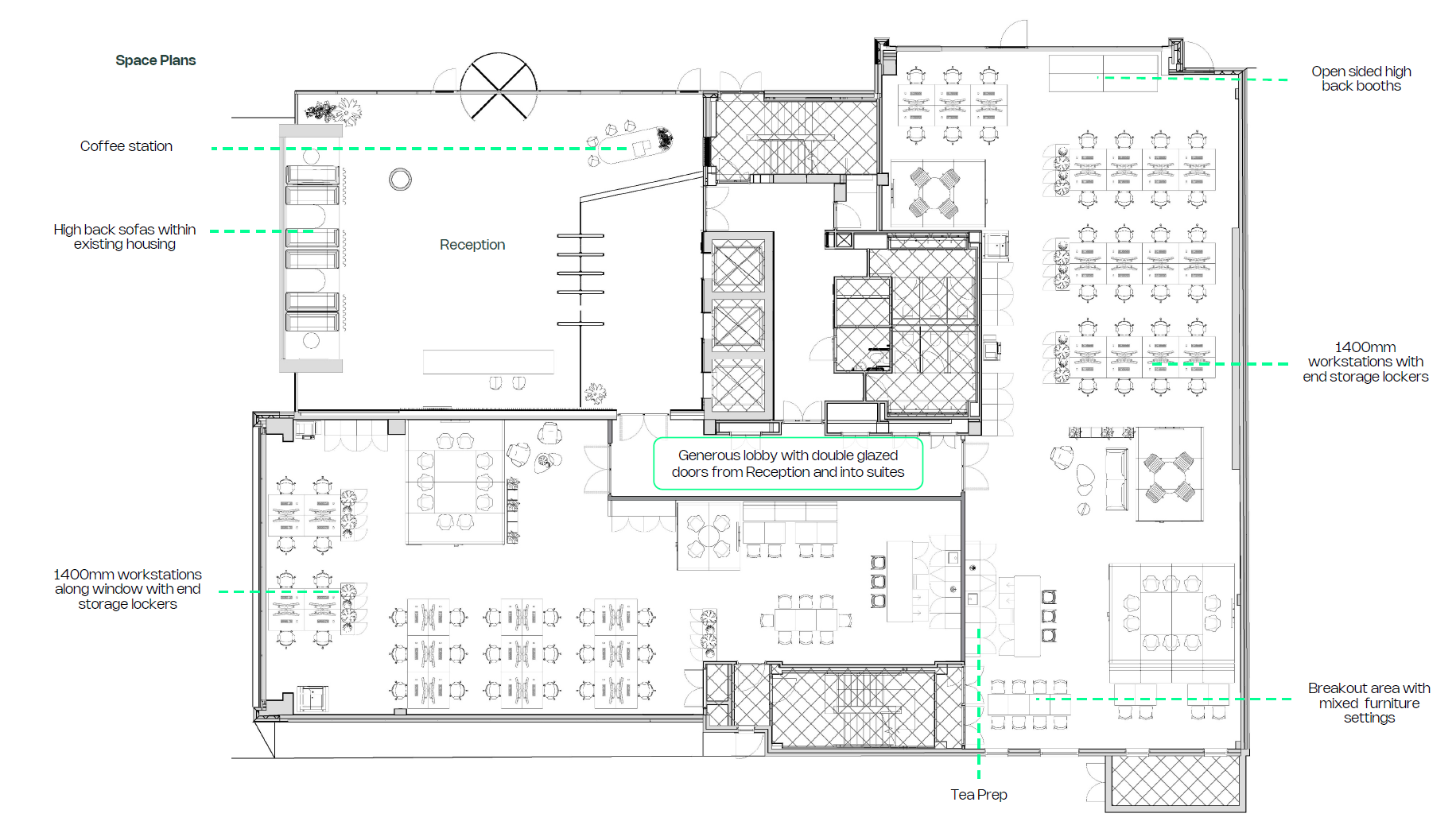 The building is steel framed with glazed curtain walling on three elevations providing an abundance of natural light from the north, south and west.