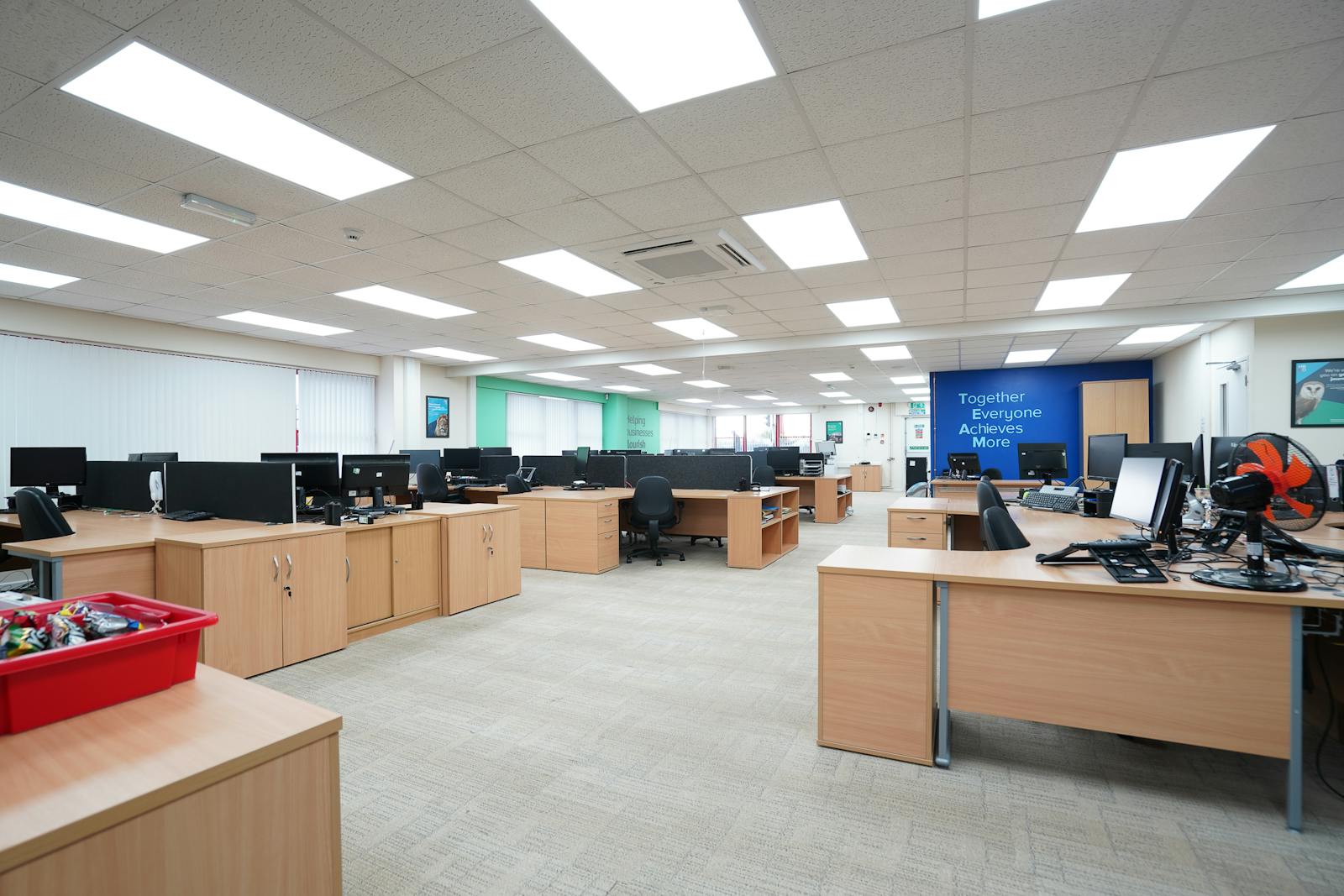 Internally, the accommodation has been arranged to provide a mix of open-plan workspace and private partitioned offices, offering flexibility for a range of business operations. A welcoming reception/foyer area provides an immediate professional impression, supported by WC facilities and a dedicated kitchen.