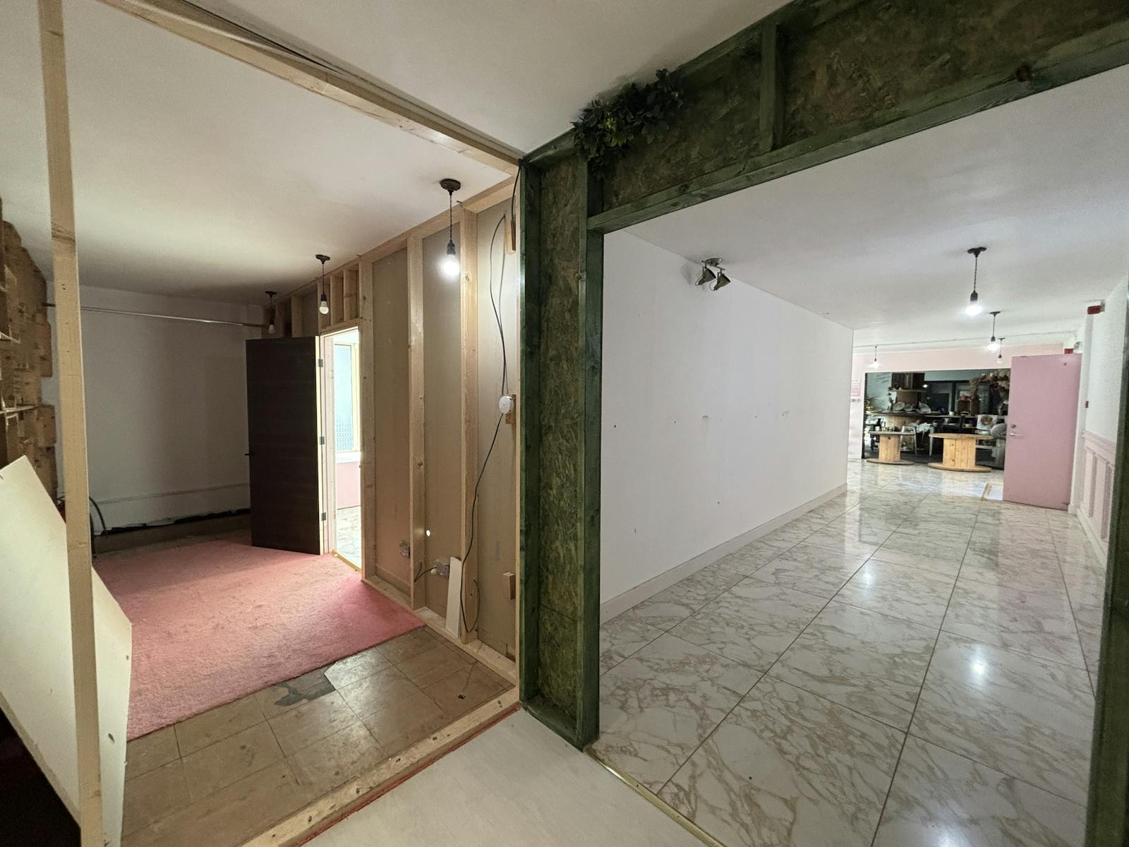 Internally, the unit has a open display entrance and then retail area, which currently has some stud partitioned areas but could be returned to open plan depending on occupiers requirements. The retail area is a mixture of carpet and tiled flooring and plastered ceiling.