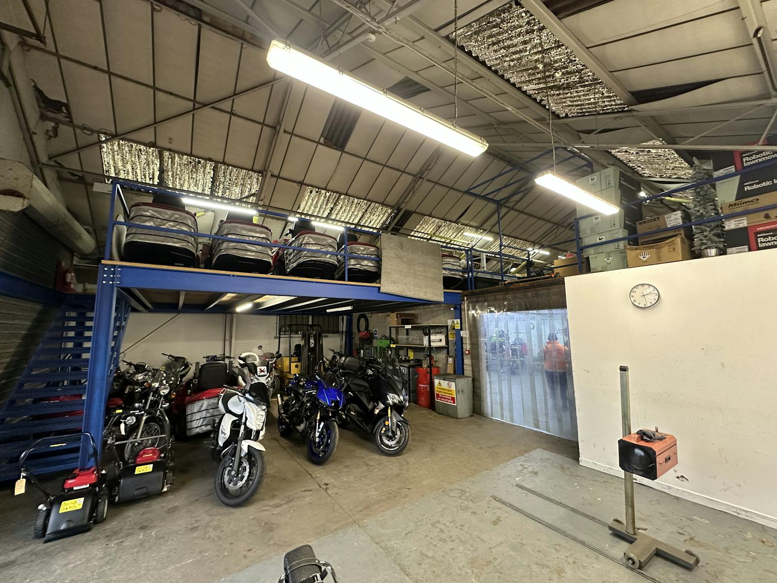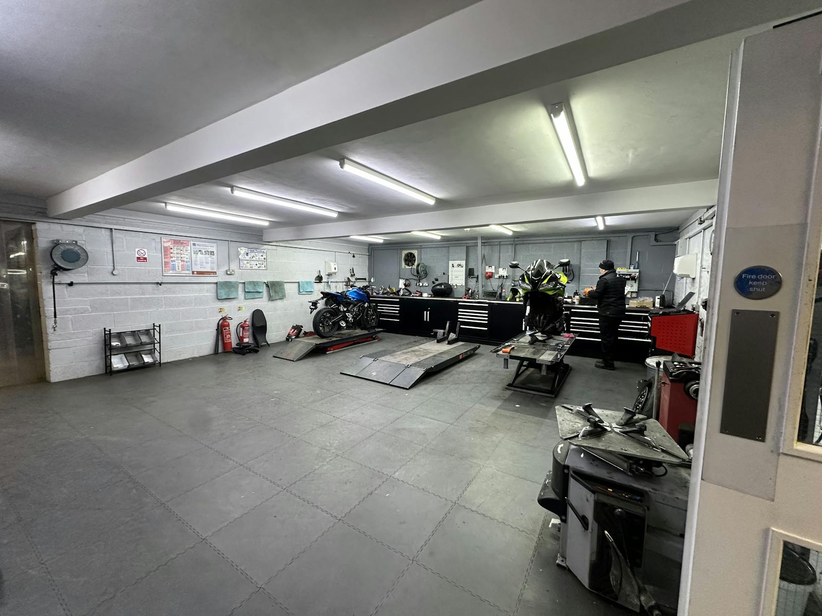 The adjoining rear workshop provides an open plan working facility having roller shutter access door, overhead lighting and access to the mezzanine storage areas.