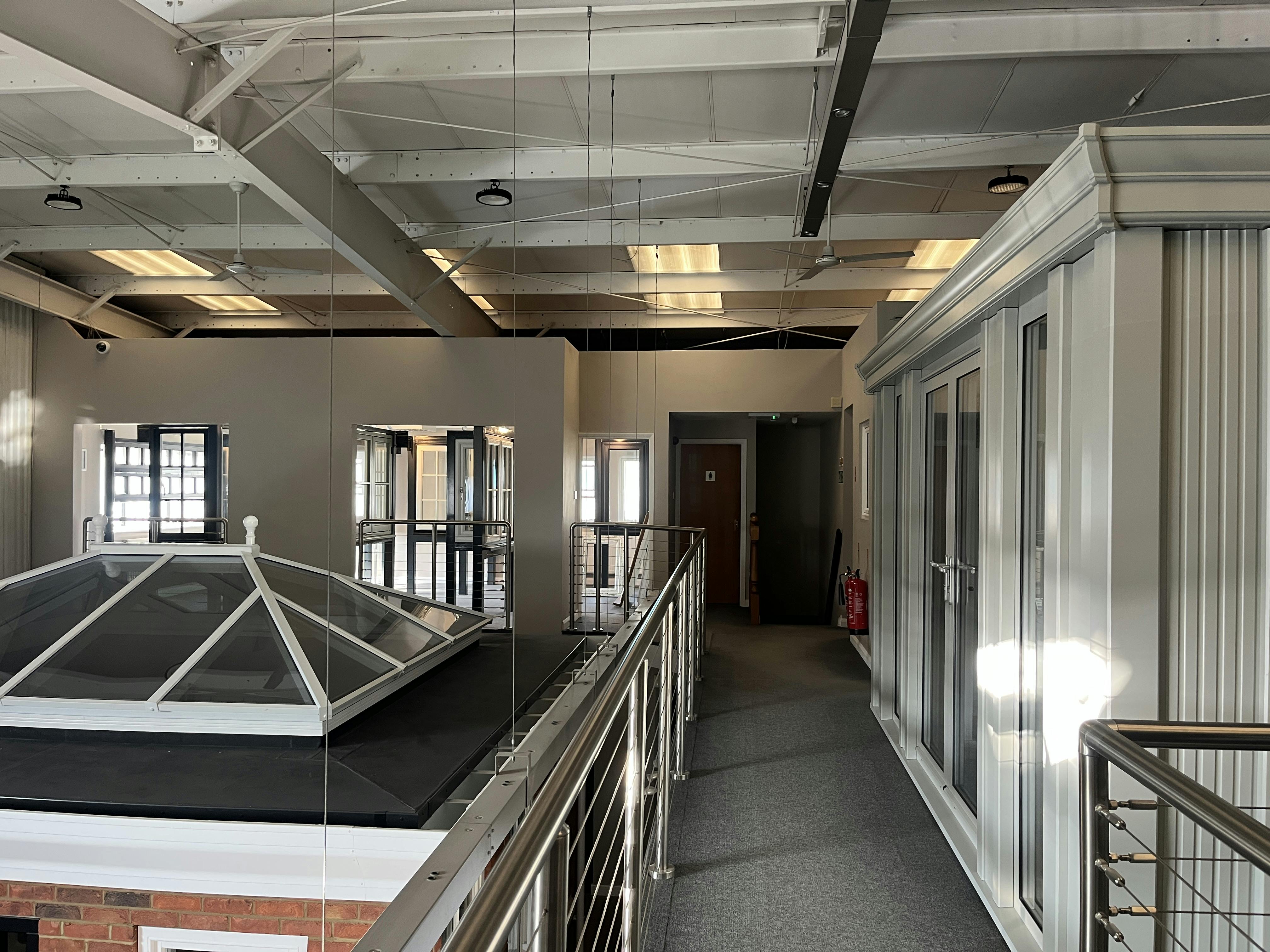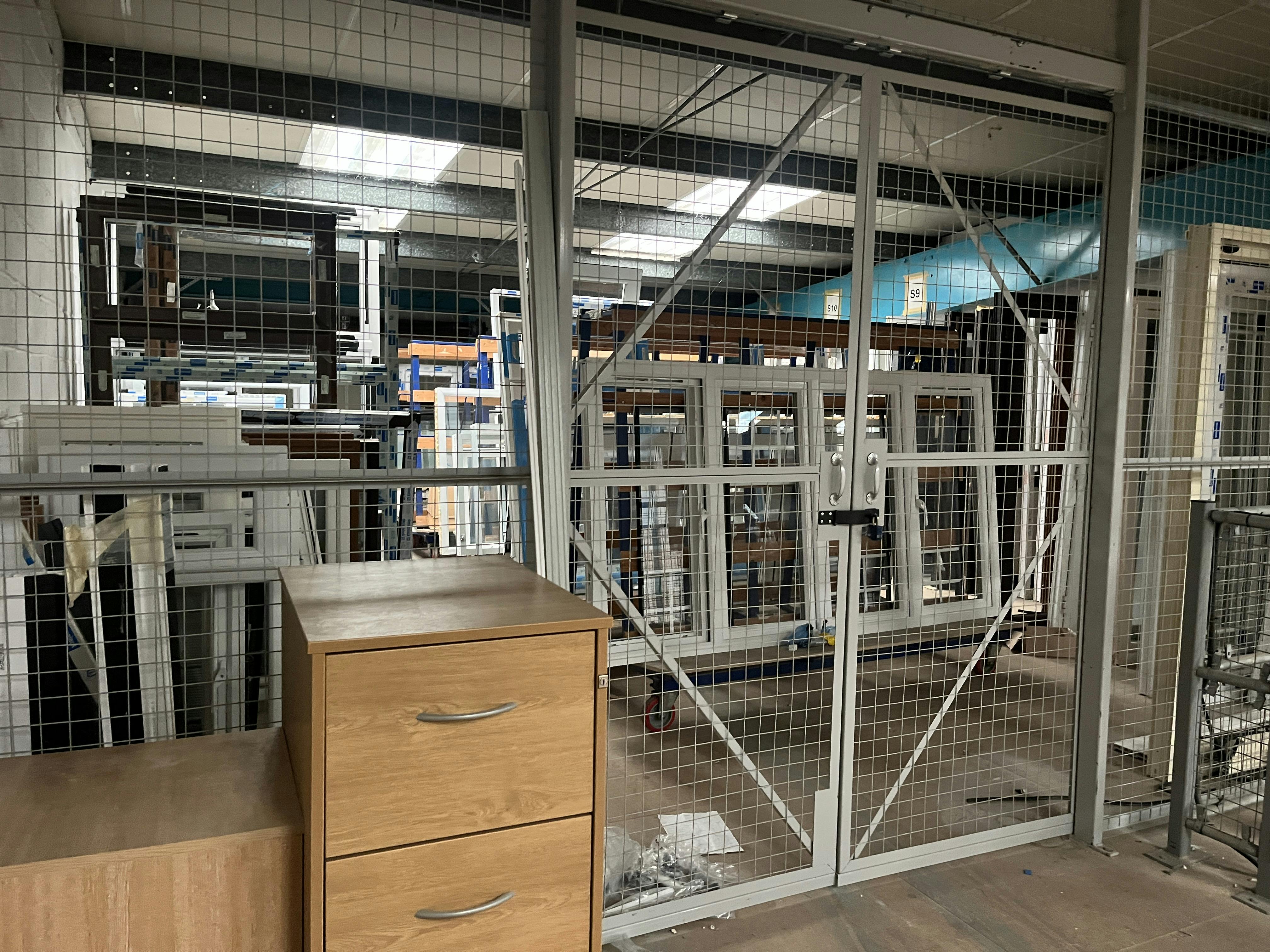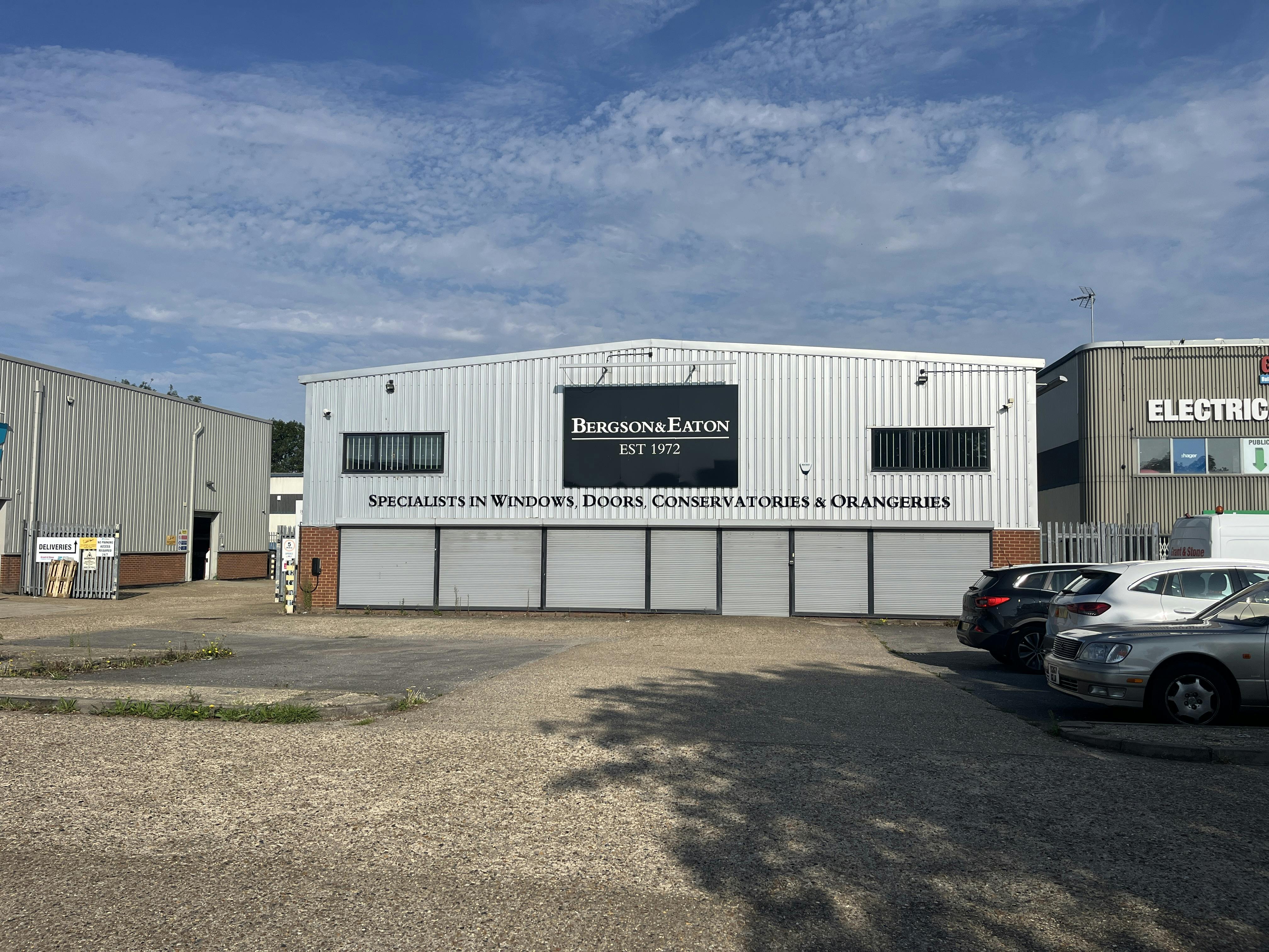 The property is a steel portal framed warehouse with showroom to the front, side roller shutter door access to the warehouse to the rear and car parking to the front.