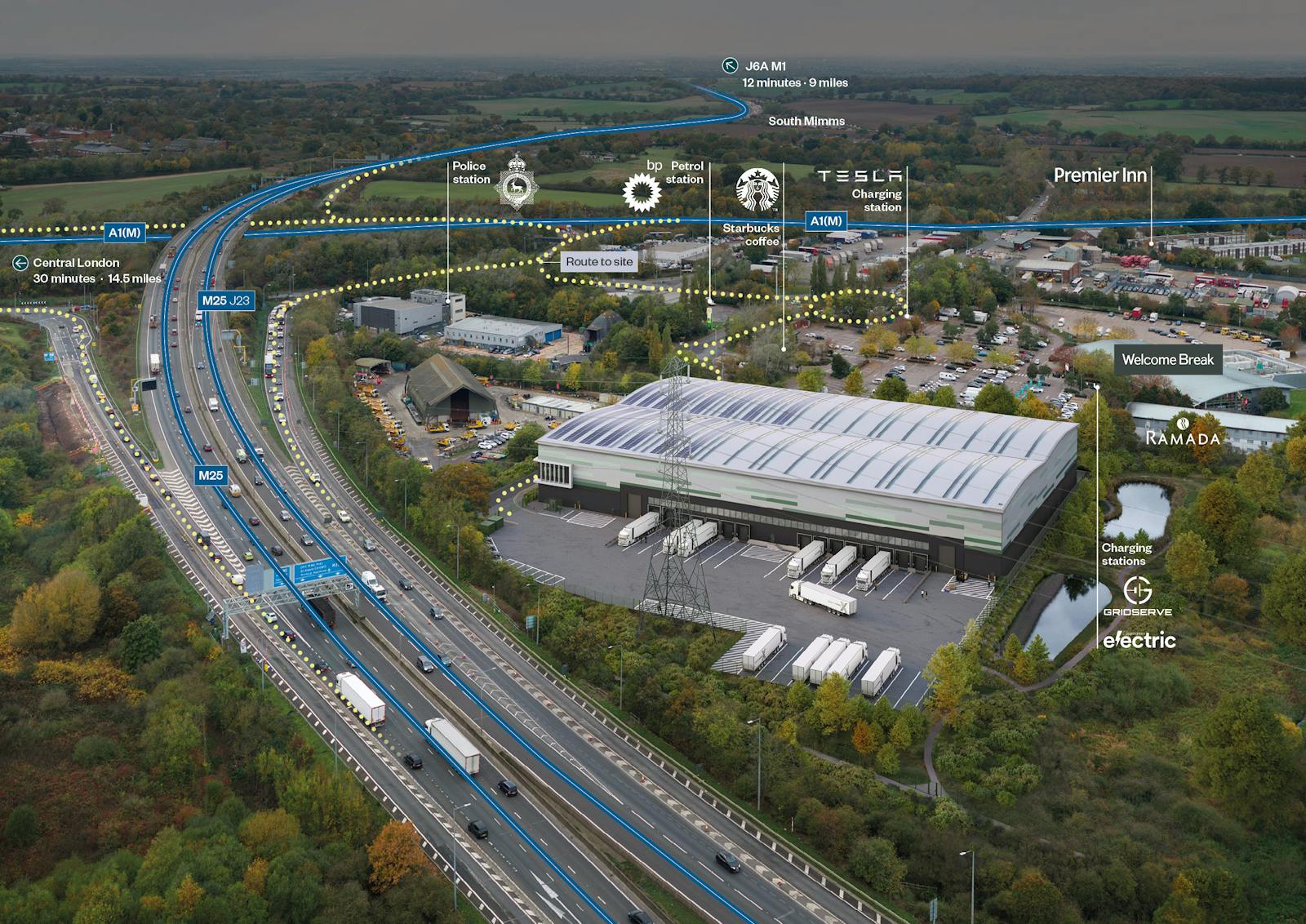 Situated at the intersection of the M25 (Jn23) and the A1M (Jn 1), alongside South Mimms Services, the unit will benefit from a super prime location ideally positioned to service London, with easy access to the wider motorway network.