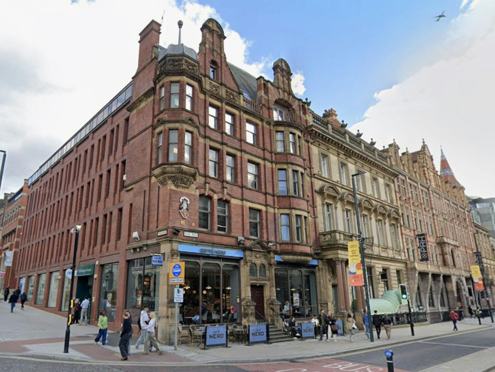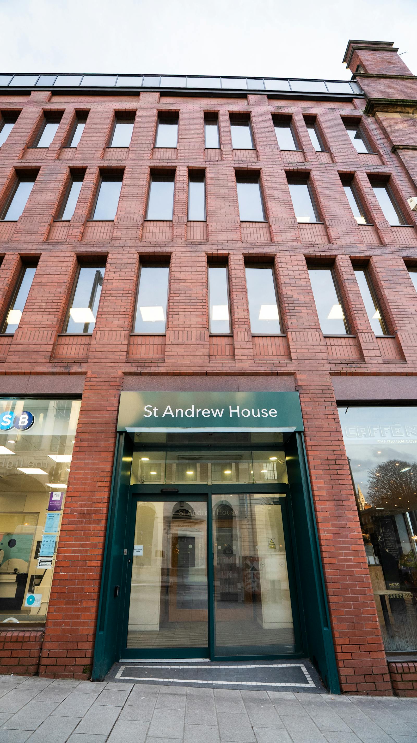 The property is an attractive, brick‑built Grade II Listed office building, featuring Caffè Nero and TSB Bank at ground floor level, with high‑quality refurbished office accommodation above.
