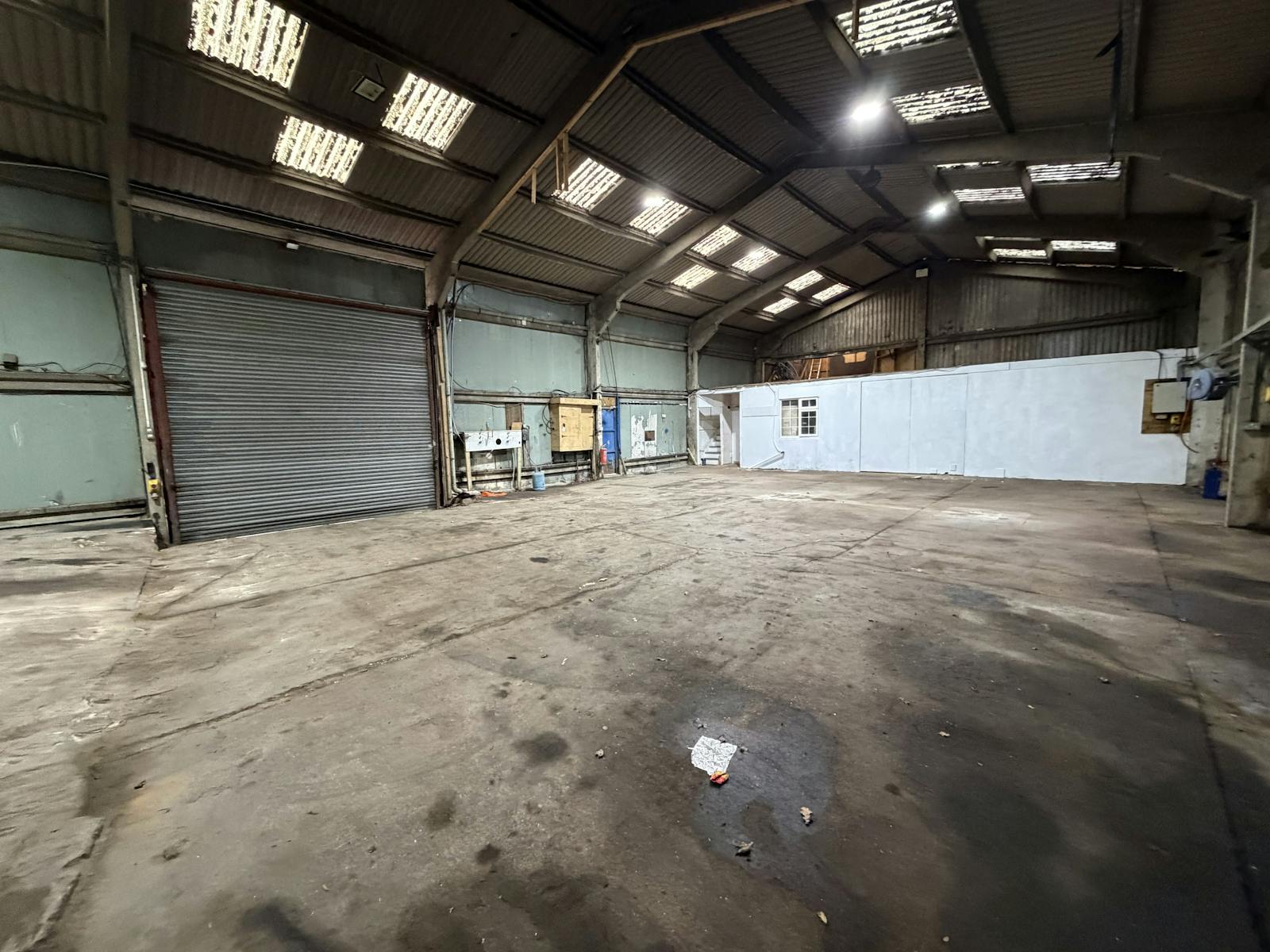 The unit provides predominantly open-span warehouse accommodation benefiting from concrete flooring, three-phase power supply and a level-access roller shutter loading door.