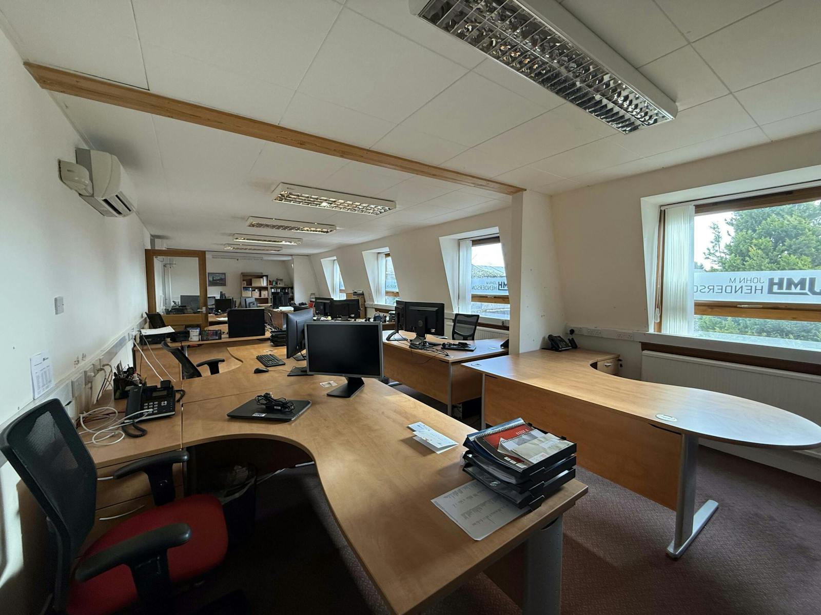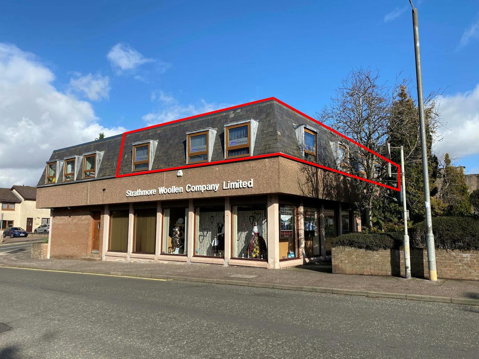 The subjects comprise modern office accommodation within a two storey purpose-built commercial premises. The building is of brick construction with a mansard style roof, re-roofed in 2024, situated on a corner site of North Street.The landscaped area to the north and surfaced car park to the south provide an attractive and accessible setting. The available subjects comprise part first floor office accommodation with remainder of the building occupied by Strathmore Woollen Company. The office comprises a mix of open plan, sub-divided meeting rooms and staff facilities. Internally, the subjects benefit from: ‚ Excellent natural daylight ‚ Gas central heating ‚ Remote controlled air conditioning ‚ Boardroom capacity up to 16 seats ‚ Meeting room capacity up to 10 seats ‚ Private shower and changing room ‚ Kitchen / tea prep ‚ Modern male and female WC facilities ‚ Store / file room ‚ Perimeter trunking ‚ Suspended ceiling with integrated fluorescent lighting ‚ Carpet overlay ‚ Key-code entry system