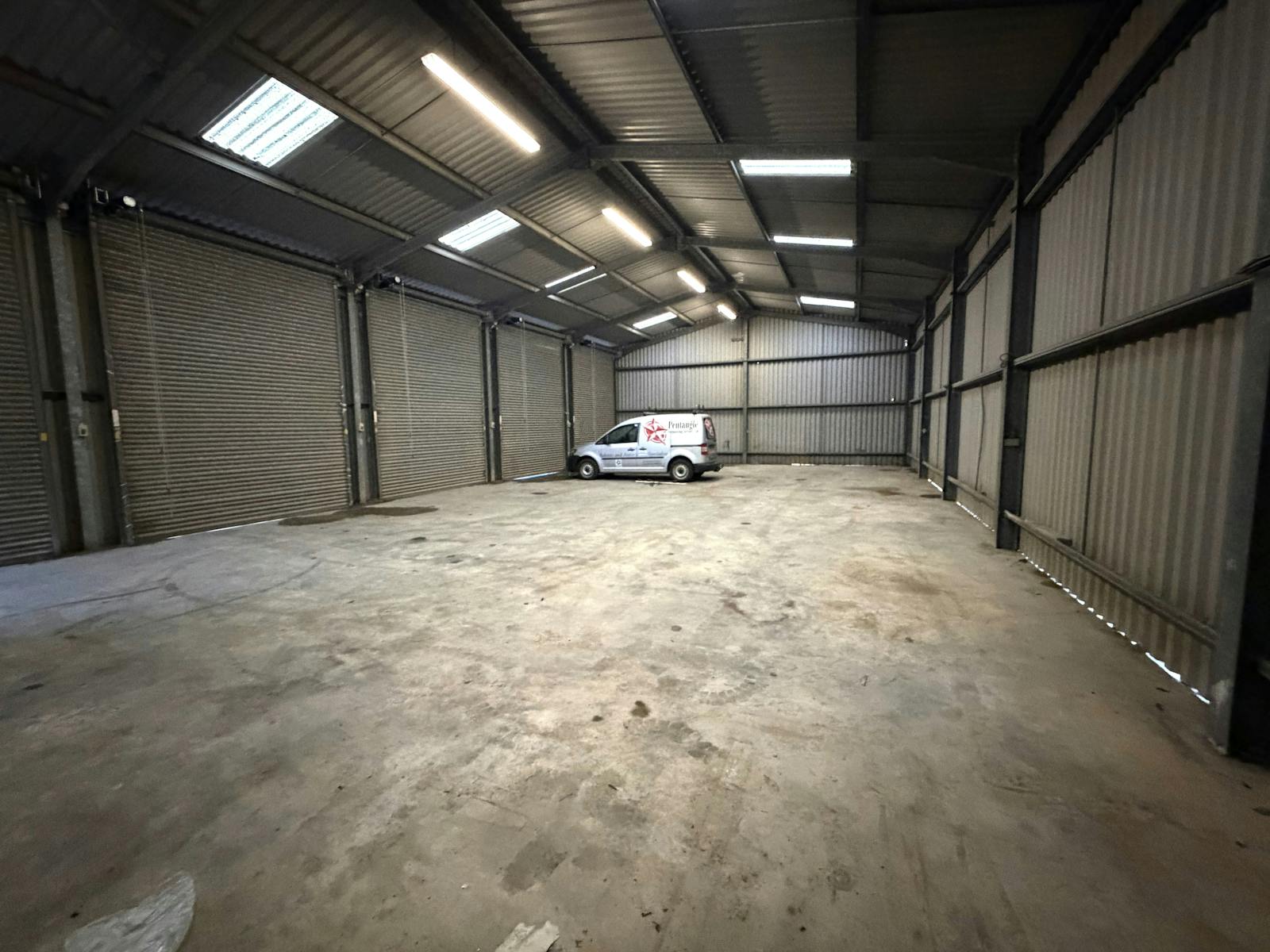 The unit is self-contained with five roller shutter doors, strip lighting and power. The unit is of steel portal frame construction with a level concrete floor with an eaves height of 4.3m.