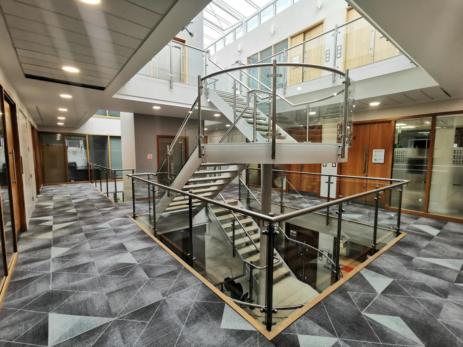 Suite 8 extends to c. 208 sq. m. / 2,237 sq. ft. and is situated on the first floor, ideally placed at the front of the block with dual aspect, enclosed by feature floor-to-ceiling curtain walling.