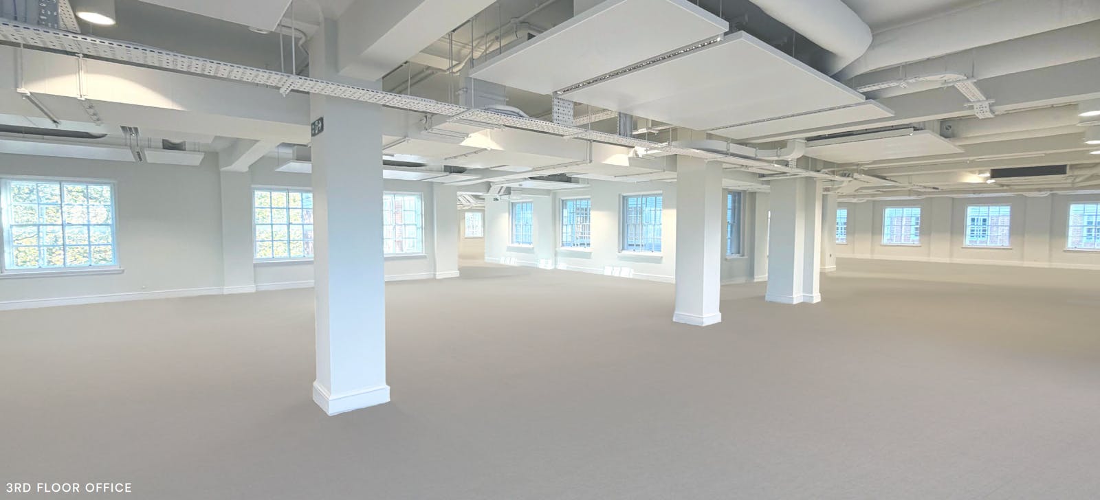 Stripped back to original shell, with ceiling mounted / rafted AC, fully raised floors, new demised superloos etc.