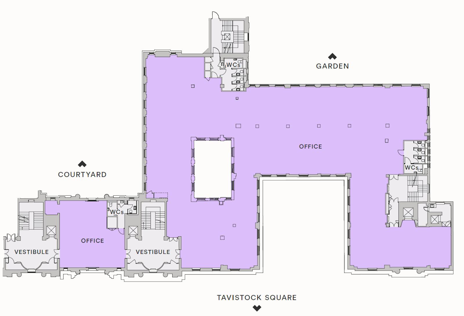 Both floors have excellent natural light, with views over Tavistock Square to the West & the Garden to the East.