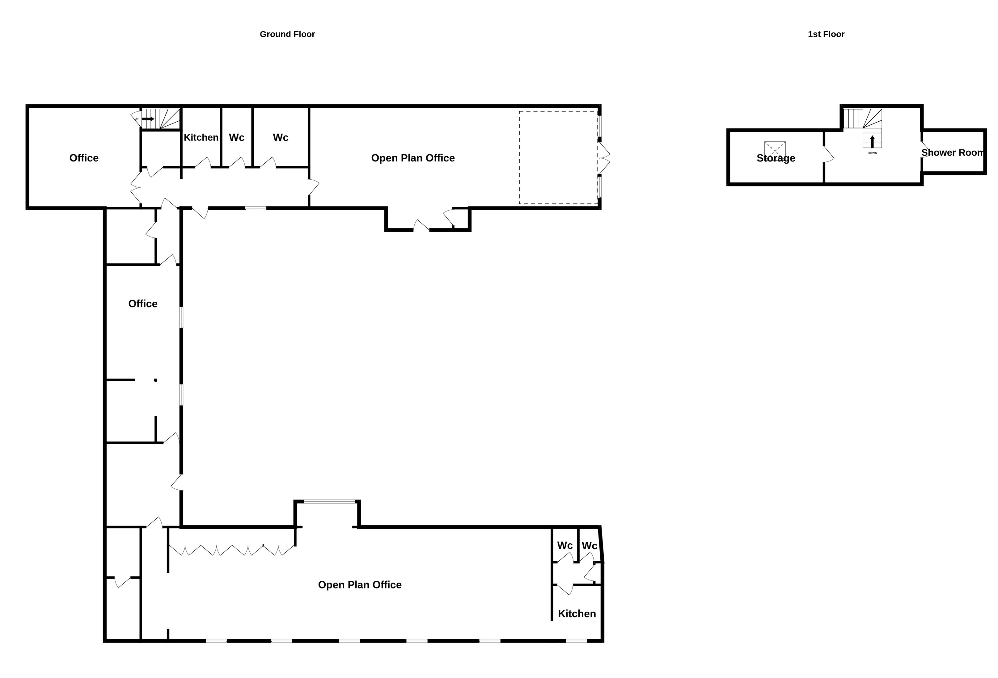 The accommodation is predominantly arranged at ground floor level and provides two largely open-plan office areas, together with a welcoming reception, kitchen, w.c. facilities and ancillary space. The first floor offers additional offices/storage together with the benefit of shower facilities.