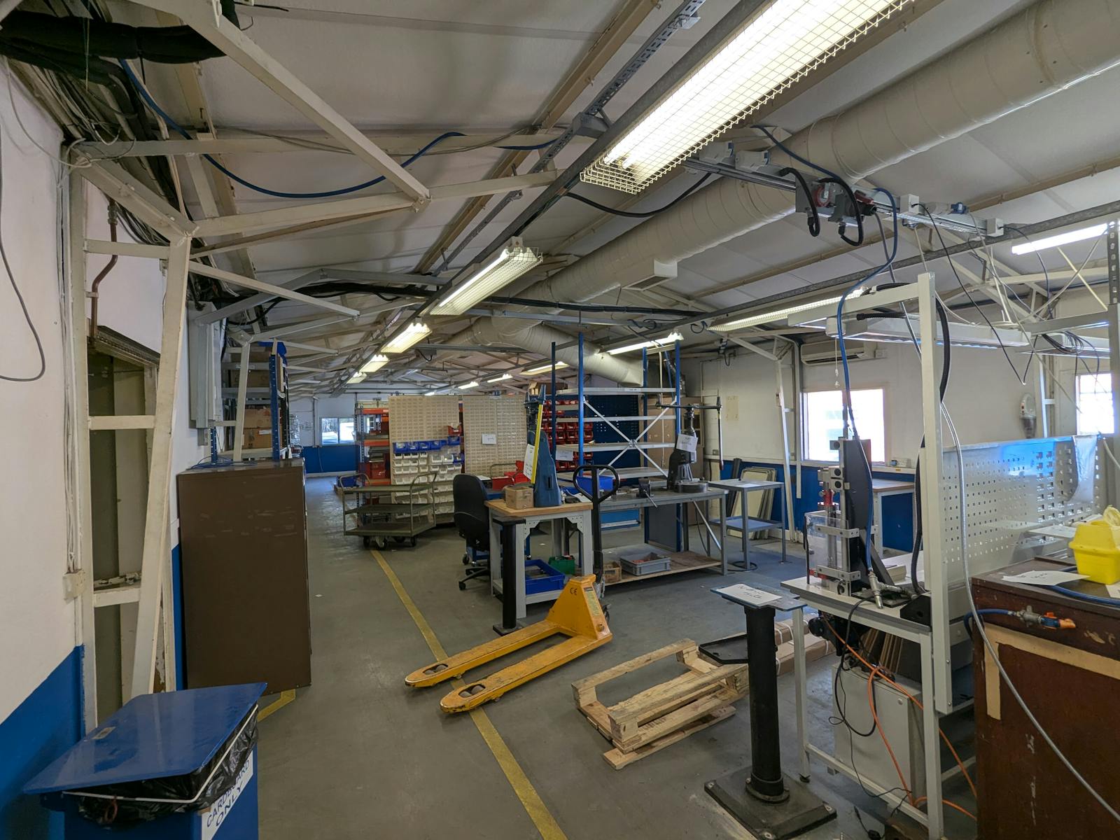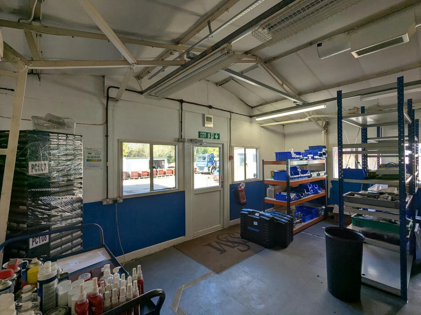 Consisting of the primary storage area and auxiliary office space, the subject space is well suited to accommodating a variety of uses. Previously used as a temperature-controlled space for equipment testing, the unit has the ability to closely control its climate. Featuring polished concrete flooring, A/C, single glazed windows, fluorescent tube lighting, powerpoints throughout and an eve hight of 2.2 meters stretching to 2.6 meters. Three phase power is also present on site.