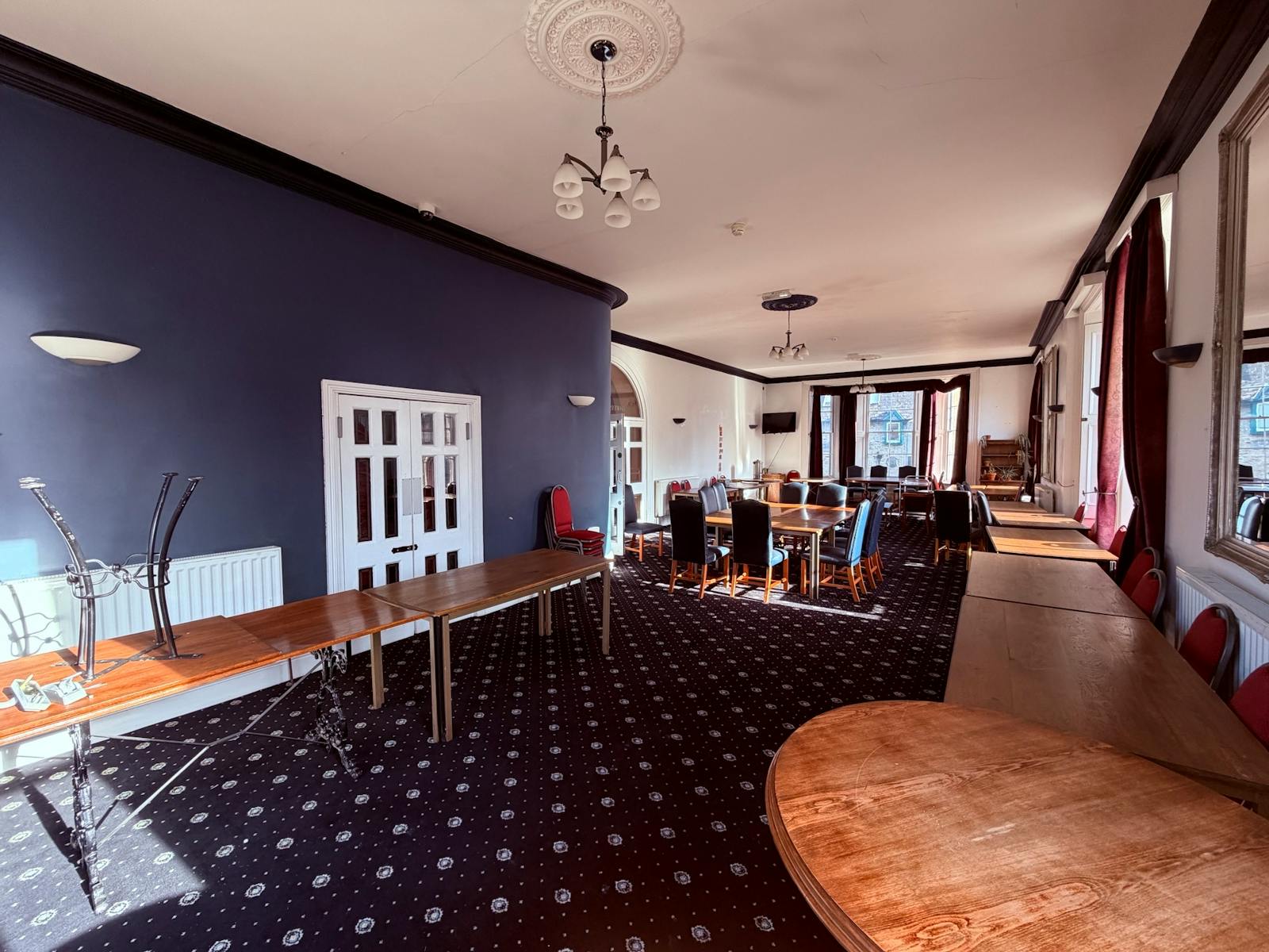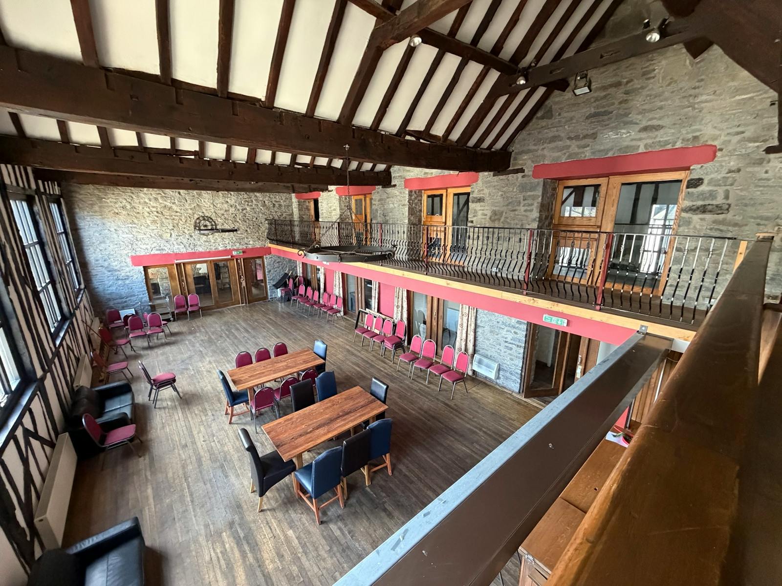 The property also includes a large function/banqueting hall, understood to have previously been the town hall, which has recently been restored and provides open plan event space with its own dedicated bar and toilet facilities. A large open air first floor level wraps around part of the hall.