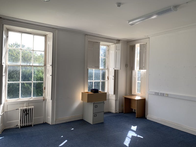 The premises comprise self-contained office rooms in a large, multi-occupied Regency manor building, with communal ground floor entrance, accessible WC and accessible lift to all floors.