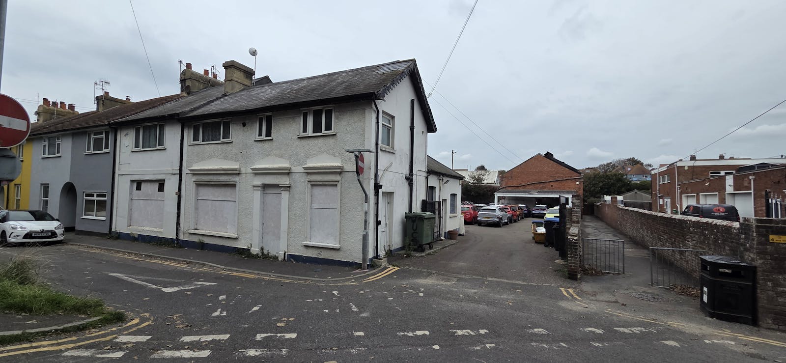 This site which is currently utilised as storage and a first floor flat has a recent consent for the conversion and extension of three buildings at the front to 3 Residential Dwellings and demolition of buildings to the rear and construction of a further 6 new Residential Dwellings. The units will comprise 7 x 2 bedroomed Units & 2 x 1 Bedroomed units.