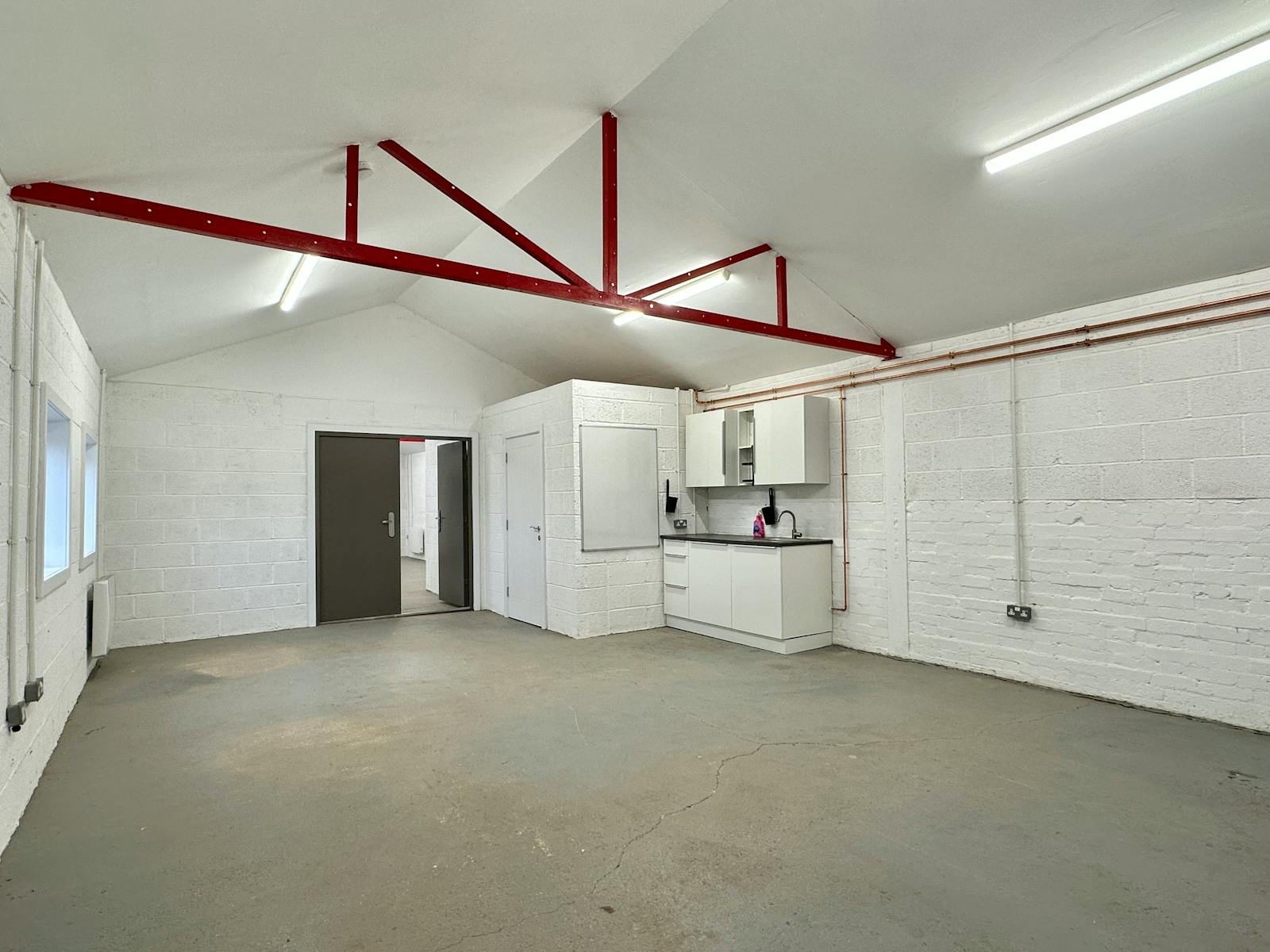 Formerly a dilapidated agricultural unit, the premises have been redeveloped into two business units of equal size totalling 1,050 sqft (97.55 m2). The units are interconnected with double security doors such that they can be occupied as a whole or individually. Adjacent to the units are two lock-up stores measuring 274 sqft (22.95 m2) – both of which have an electricity supply. A single lock-up store will be allocated to each of the units.
