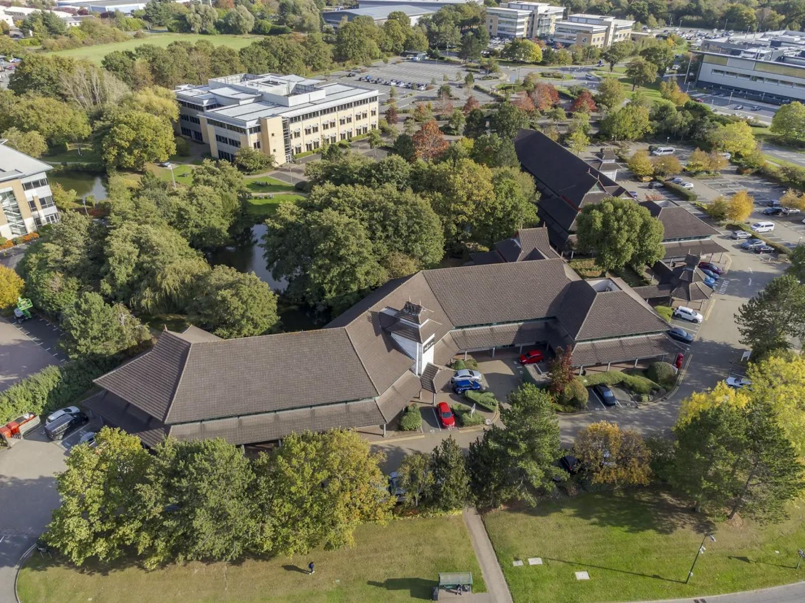 The Waterside Centre is a modern oriental pagoda style building set around an enclosed garden area overlooking a purpose-built lake located on Birmingham Business Park, the most established out of town office park in the Midlands. Set within 148 acres of mature parkland, Birmingham Business Park comprises 2.4m sq ft of high quality office space and is home to more than 150 companies, including Rolls Royce, IMI, Fujitsu, Goodyear, GKN and Changan Automotive, and circa 10,000 employees.