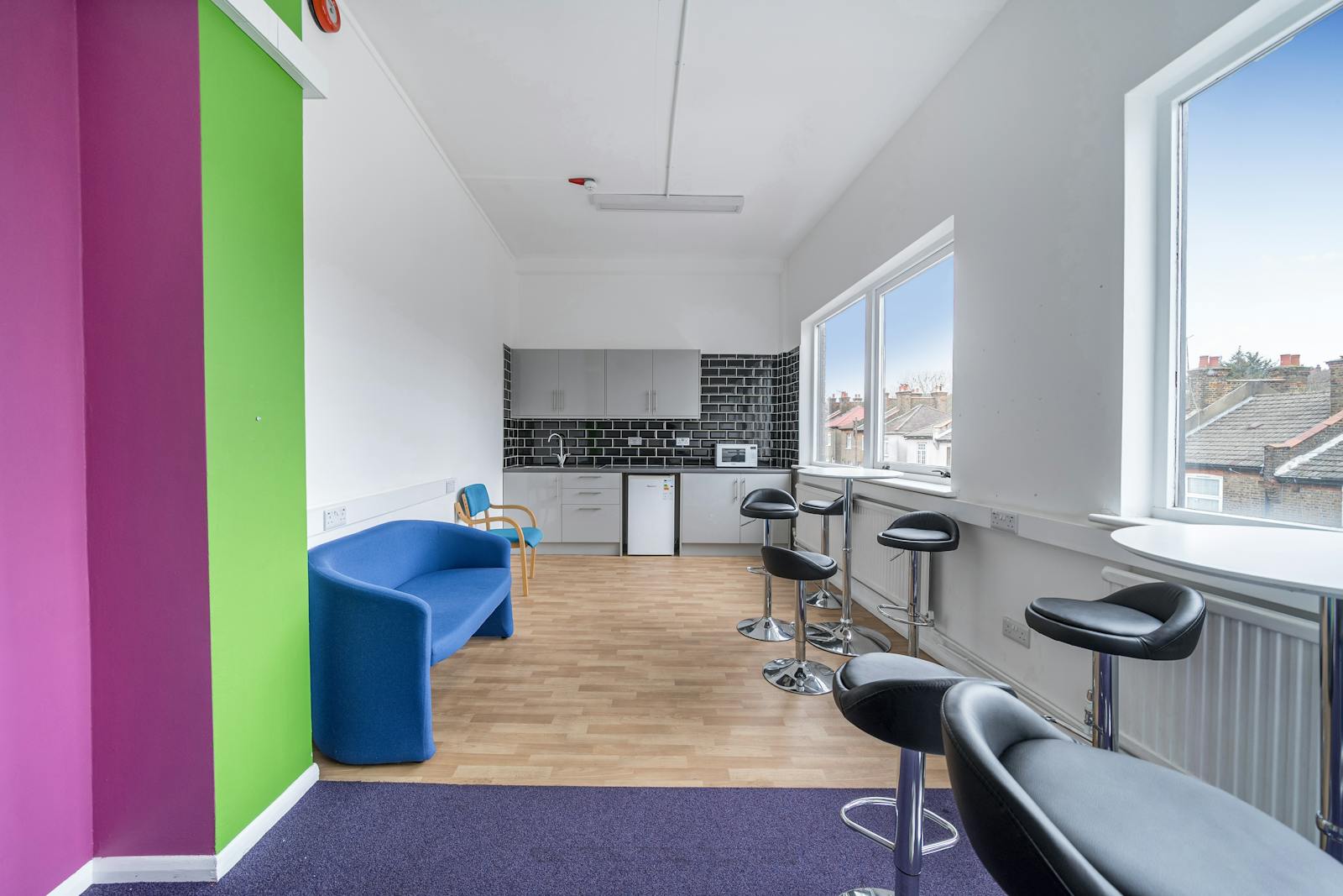 Triangle House is arranged over three floors and offers a fully self-contained building comprising approximately eight large classrooms, private offices, staff and pupil facilities, and a large car park at the rear. The building is in good decorative order and benefits from staff and pupil WCs, a canteen/breakout area, a welcoming reception, good natural light throughout, an entry system, fire alarm, double glazing, and gas central heating.