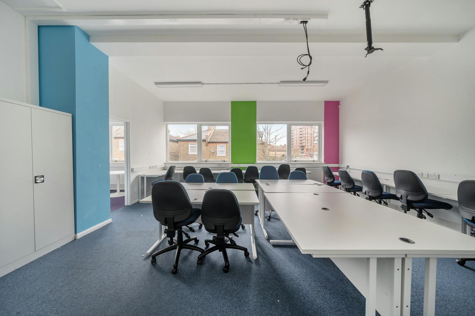 The classrooms all benefit from tables and chairs, perimeter trunking, natural light throughout, and data cabling for projectors and whiteboards offering a ready to occupy building.