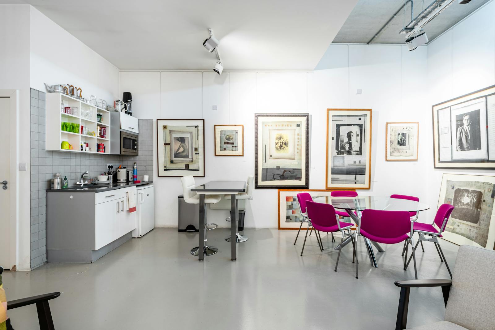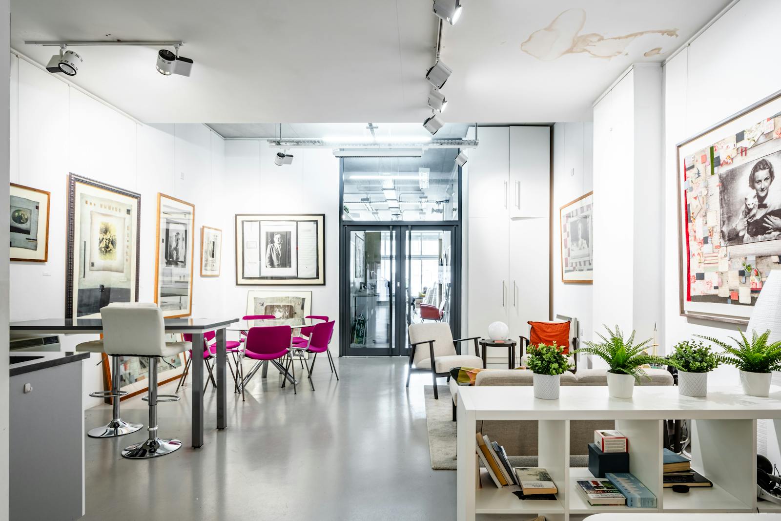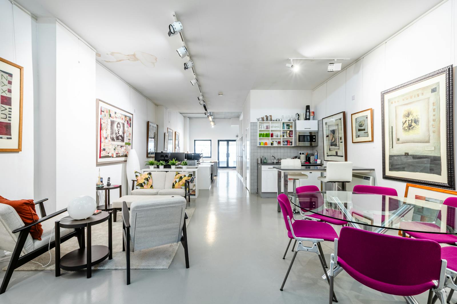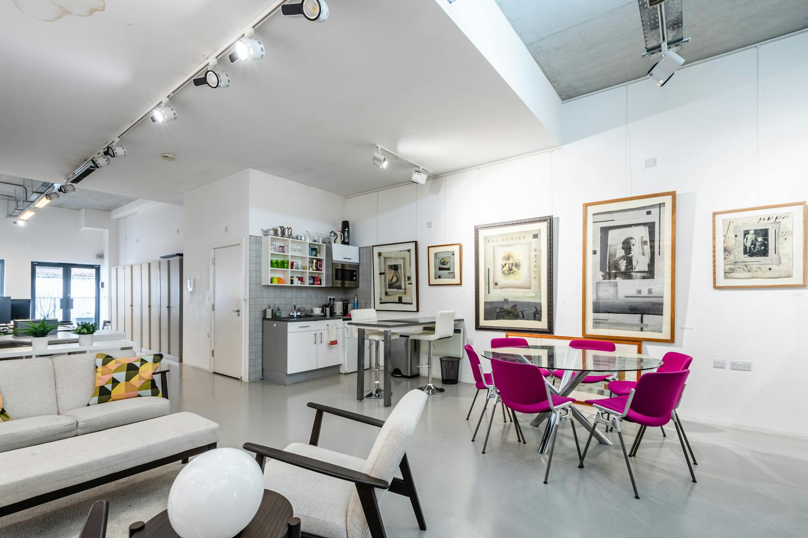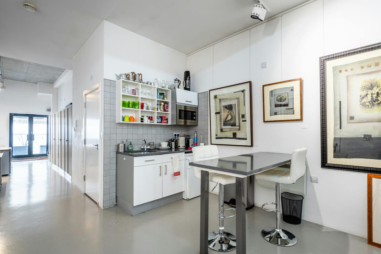 Ideal for creative companies, the unit has a contemporary industrial feel with high ceilings of exposed concrete. The space is open plan and includes a built-in storage area, kitchenette and WC.