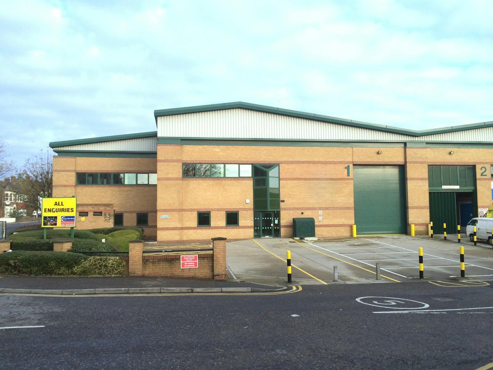 The unit is a prominent end of terrace industrial warehouses on the Falcon Park Industrial Estate in Neasden.