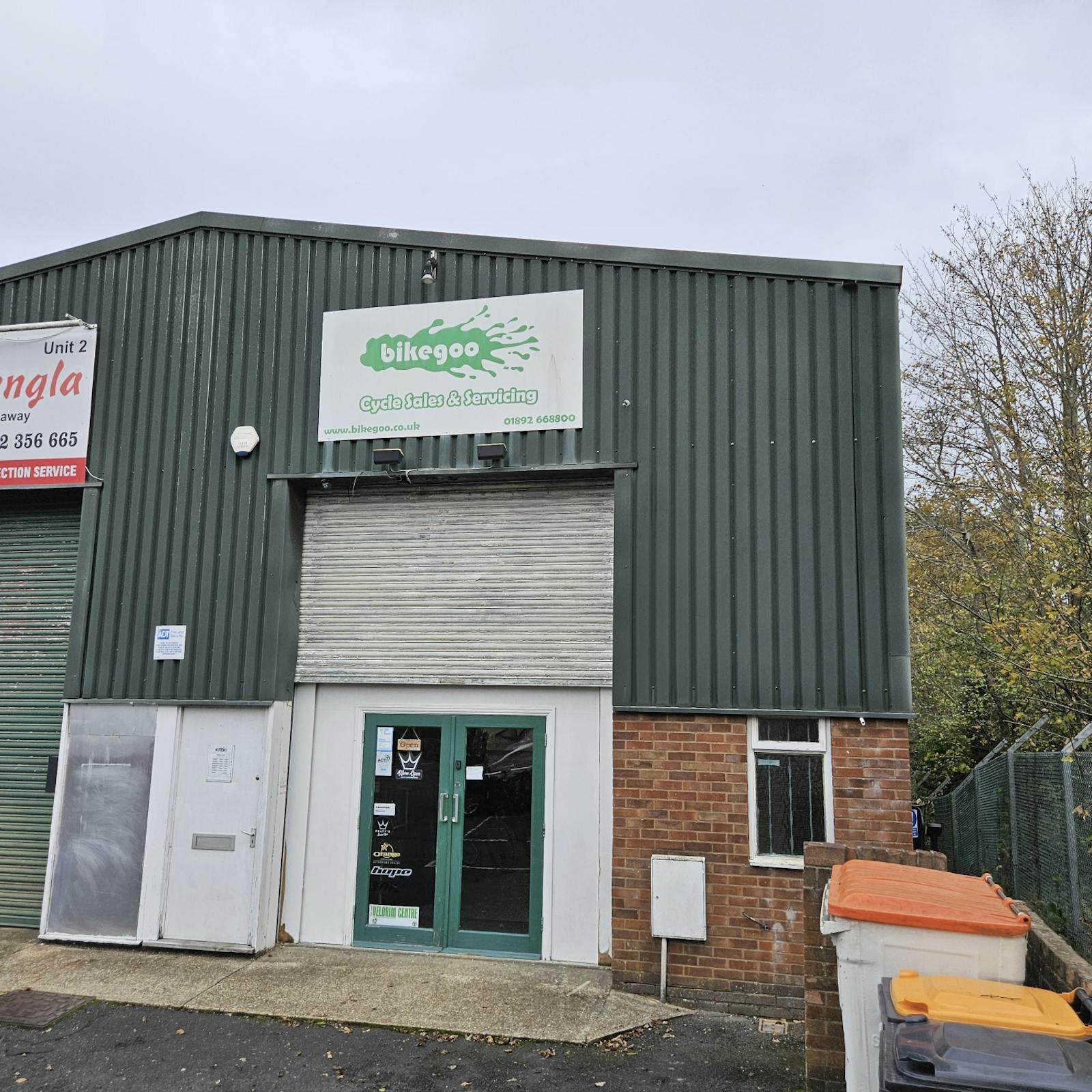 The property comprises an end-of-terrace industrial unit of steel frame construction with part brick elevations. Access is provided via double personnel doors.