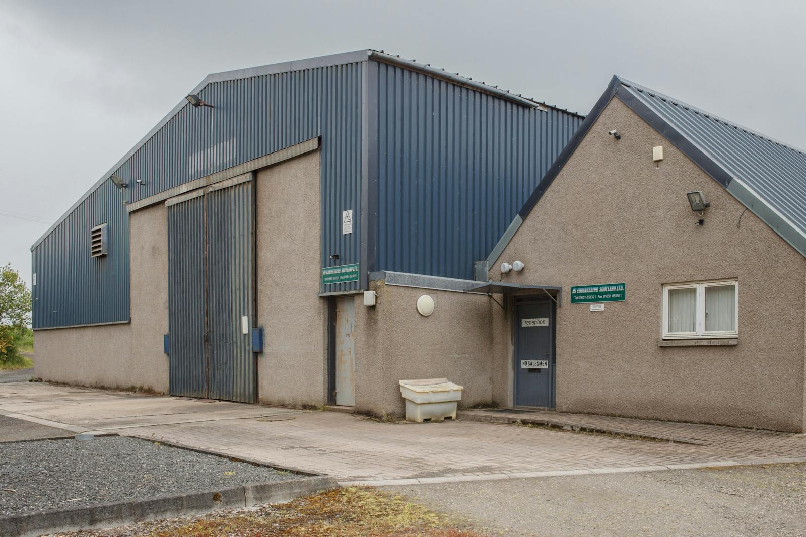Additional office and staff accommodation is included within the extension to the east, which is of rendered concrete block construction under a pitched roof clad in profile metal sheeting.
