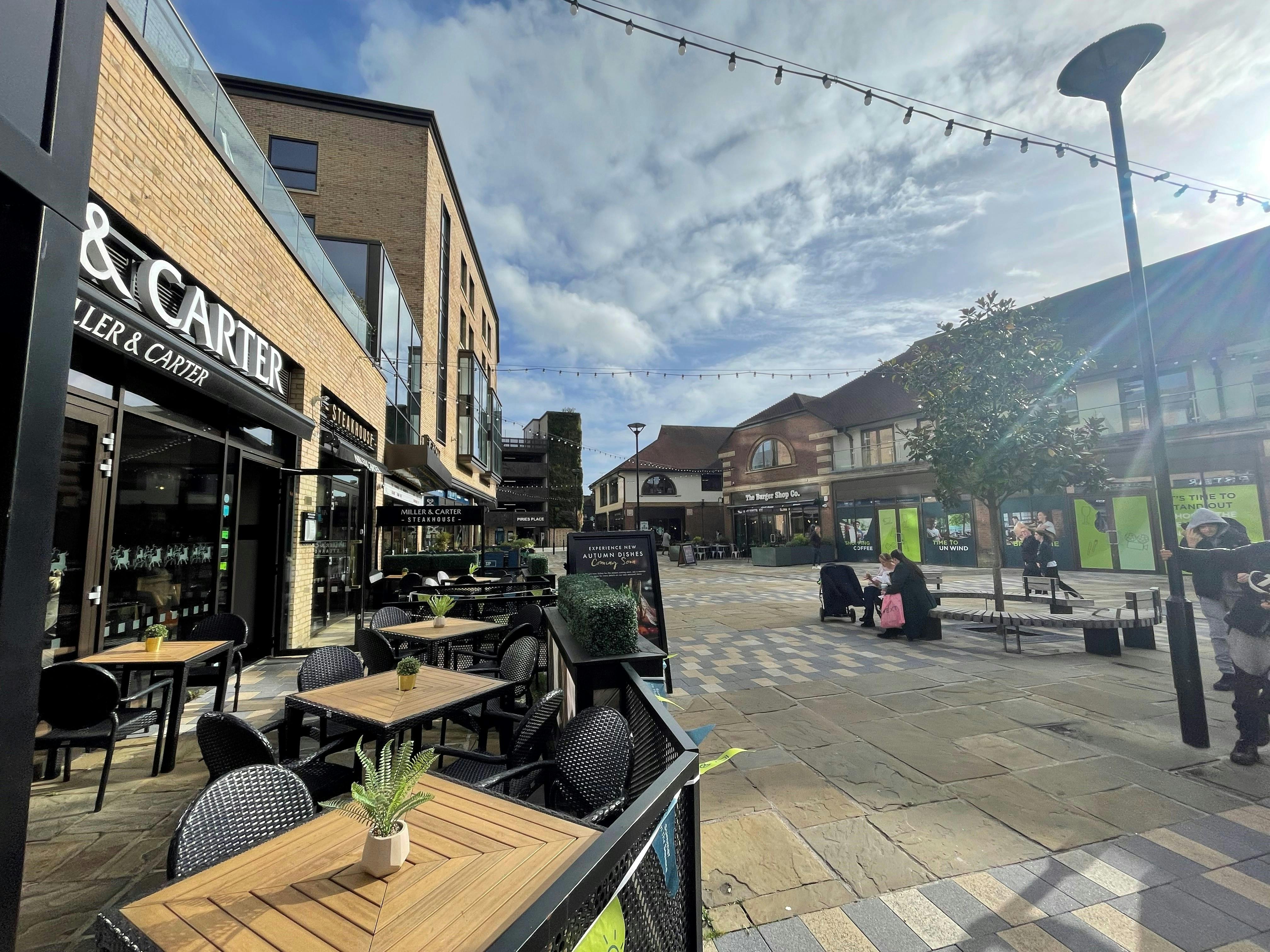 The new area boasts outside dining & entertainment areas situated alongside an Everyman Cinema & Premier Inn. Other occupiers within the scheme include The Red Deer Pub Brasserie; Miller & Carter Steakhouse; Sit & Sip; Starbucks; The M Bar; Broadbridges Clothing; Turquaz; Louise Sloan Opticians and Ceramic Shack. The scheme is immediately adjacent to a new 320 space car park.