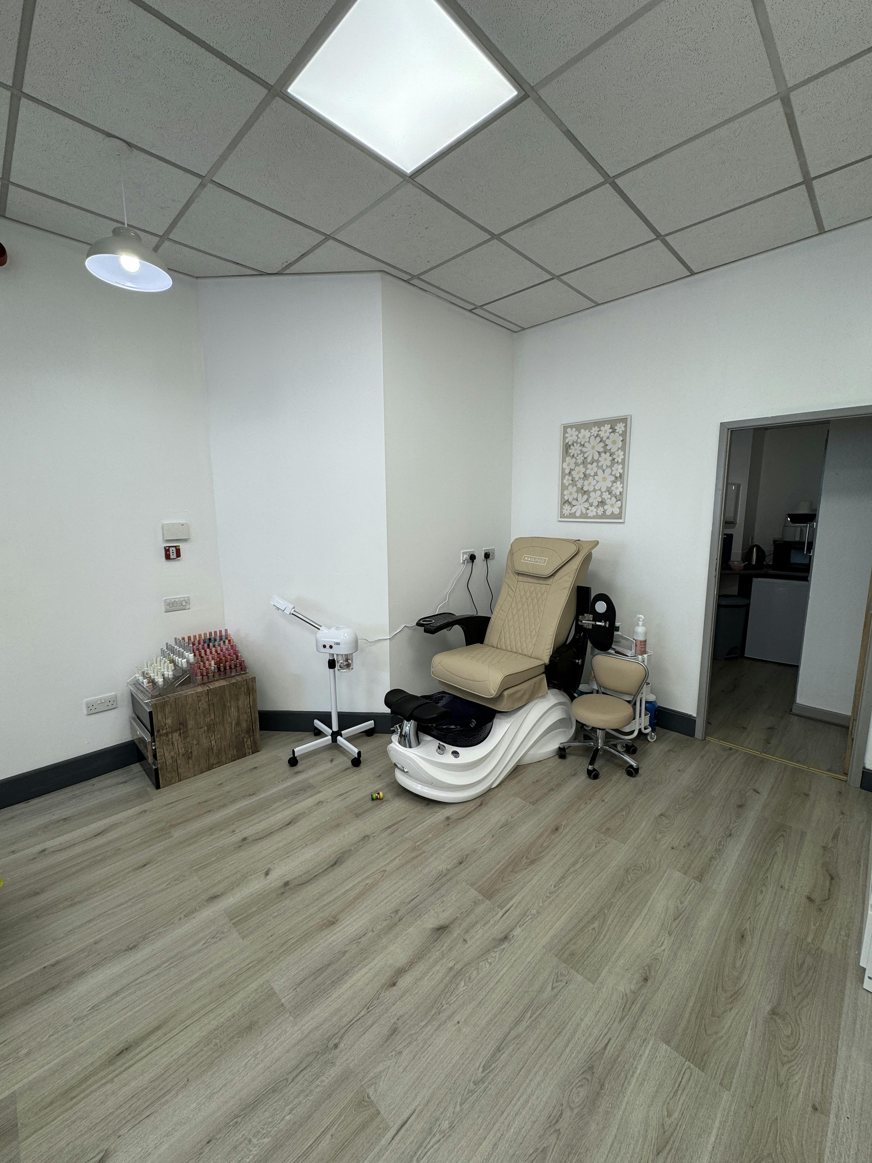 The floor is covered in laminate and the walls are of plaster/paint. The suspended grid ceiling incorporates LED box lighting. A store, kitchenette and WC are provided to the rear of the shop.