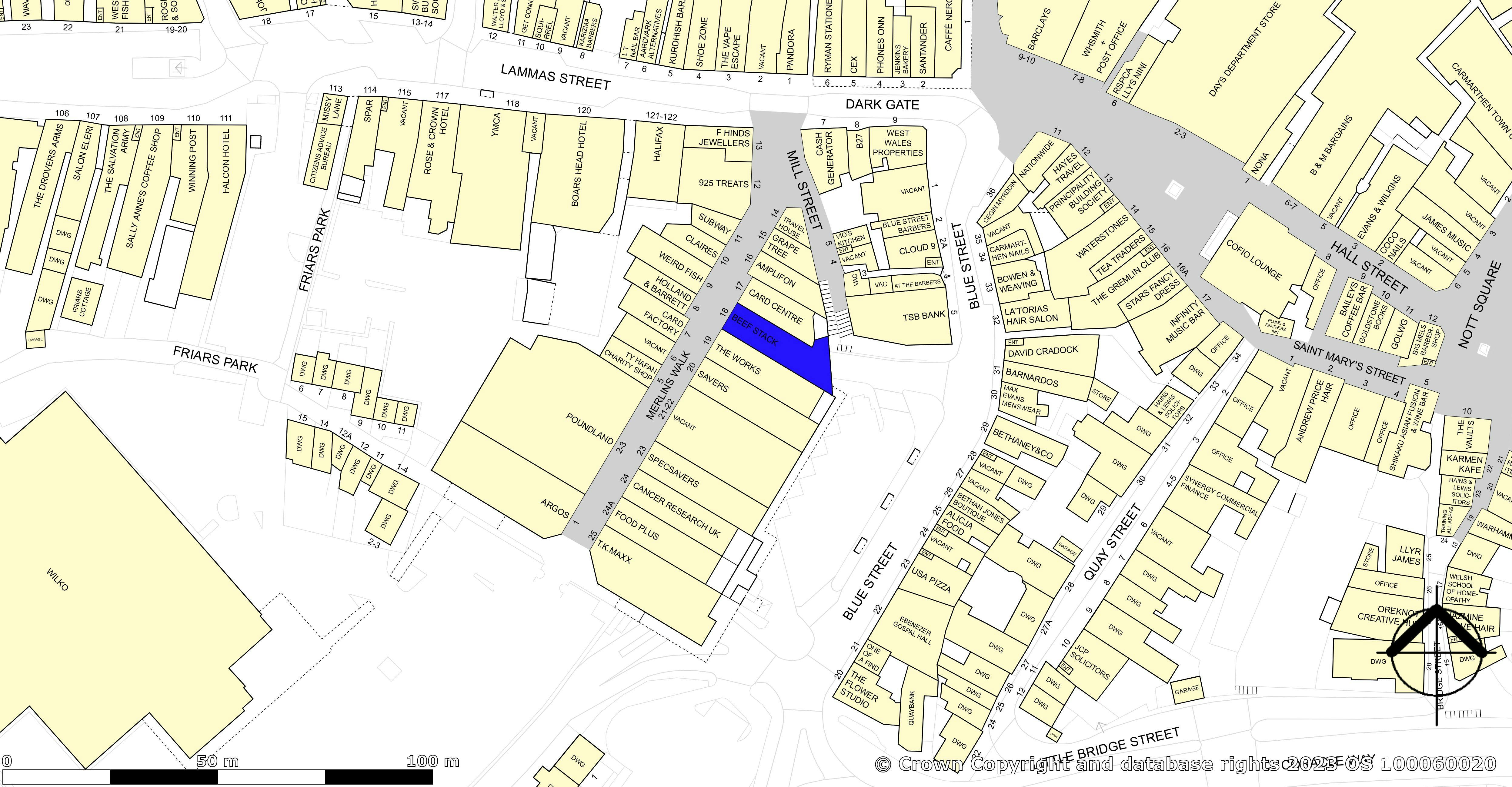 The unit occupies a prime position within Merlin’s Walk, Carmarthen and is located close to one of the town’s main car parks with space for 350 vehicles. The property occupies a prominent location in the shopping centre with nearby occupiers including Poundland, Subway, Card Factory, The Works and TK Maxx.