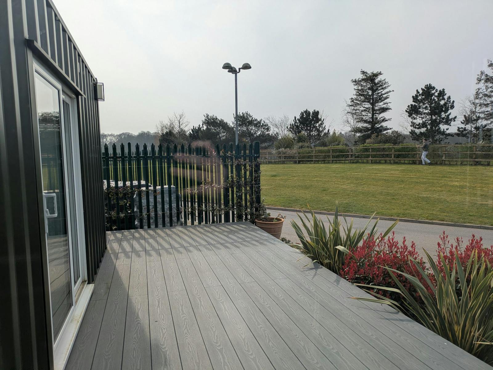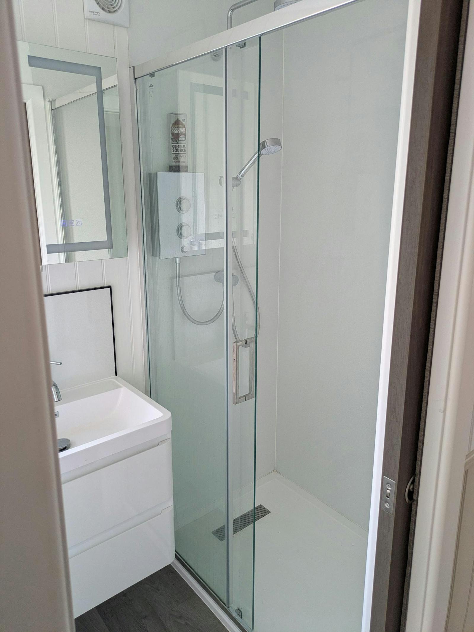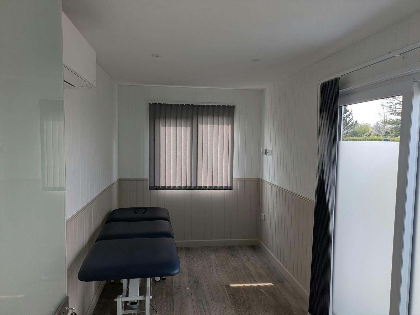 This modern workspace features a bright open plan interior with wood-effect flooring and full air conditioning for heating and cooling. The unit is fully self-contained and includes its own kitchenette plus a private W/C with shower facilities, making this an ideal independent base for a variety of professional or creative uses.