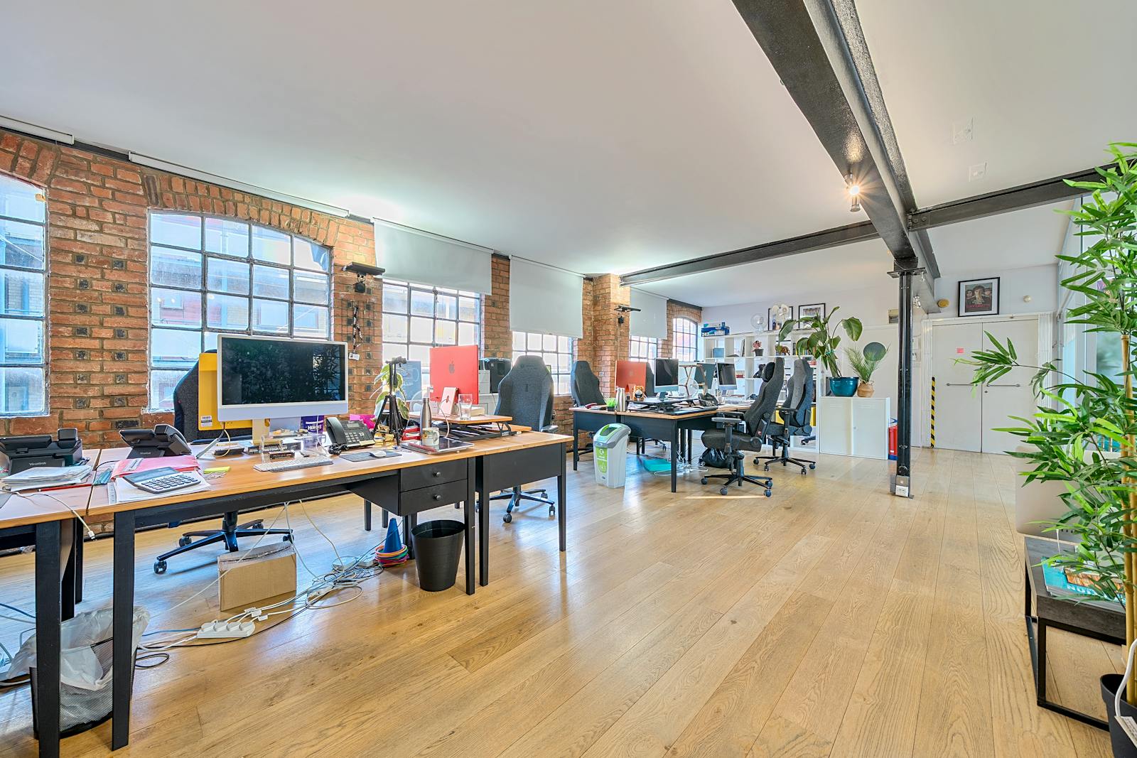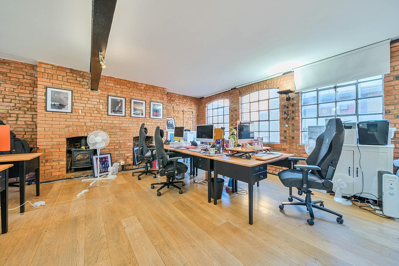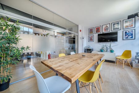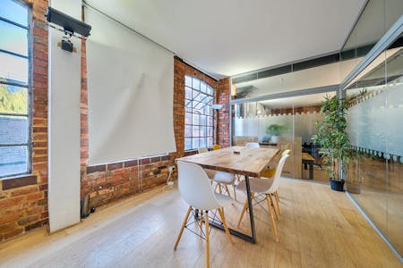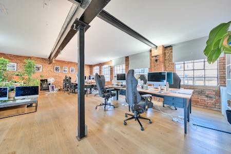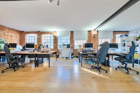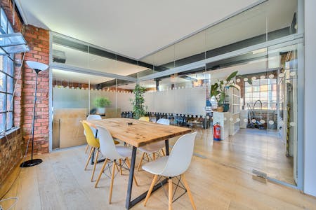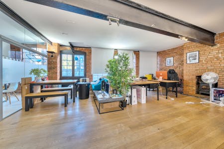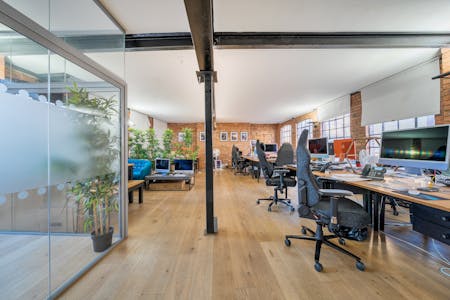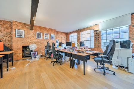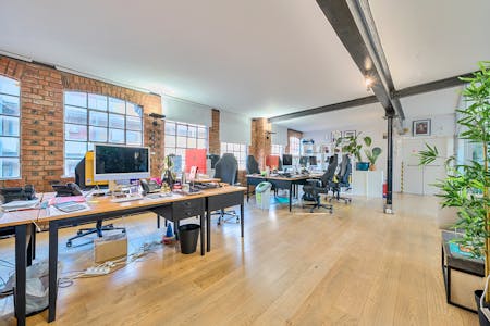 The office is currently arranged in an open-plan layout, comfortably accommodating multiple desks while maintaining a sense of flow and spaciousness. A glazed meeting room allowing for up to 8 people in addition to a fully fitted contemporary kitchen. The overall atmosphere is both professional and relaxed, enhanced by thoughtful details such as framed artwork and contemporary furnishings. Ideal for creative agencies, start-ups, or production teams, this space offers an inspiring and practical environment in the heart of Shoreditch’s vibrant creative community.
