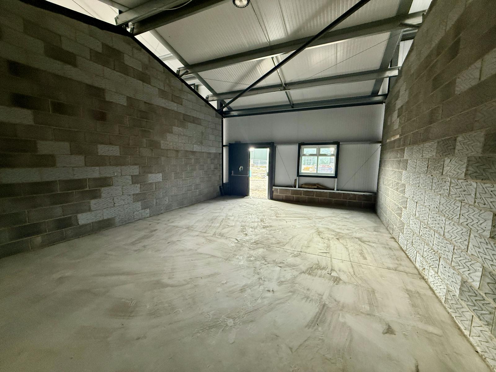Unit 2 is a mid terrace industrial/workshop unit of steel portal frame construction with profiled steel clad elevations and a pitched steel clad roof. The ground floor is concrete, the internal eaves height is approximately 3 metres and access/loading is via double personnel doors. Internally there is LED lighting, disabled W.C and kitchenette facilities. Externally, there is a concrete forecourt providing 2 car parking spaces.