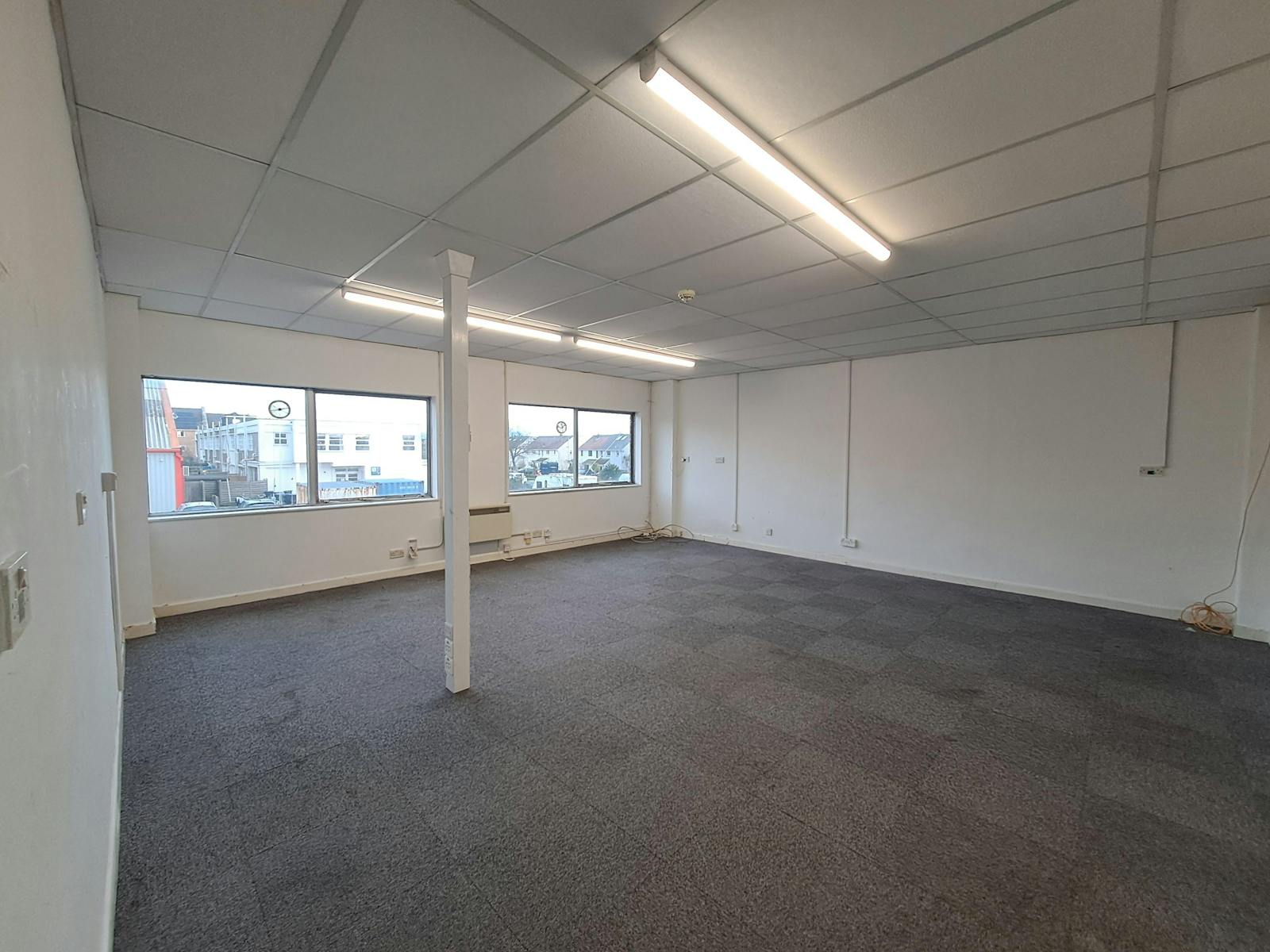 The unit has an eaves height at 19ft 6in (6m) and an electronically operated loading door. Car parking is at the front of the unit.
