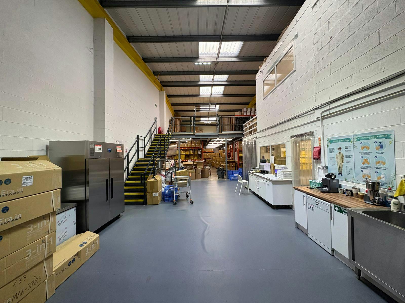 A well-presented end-of-terrace industrial/warehouse unit located within the established Fourways Trading Estate in Trafford Park, one of the North West’s premier industrial locations. The property provides a steel portal frame warehouse with integral two-storey office accommodation and a substantial mezzanine floor.