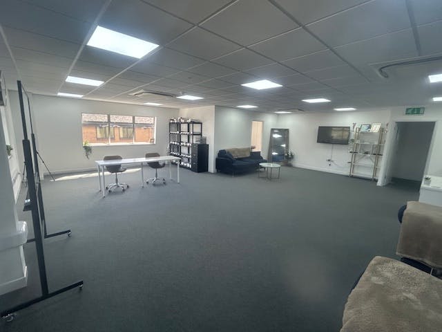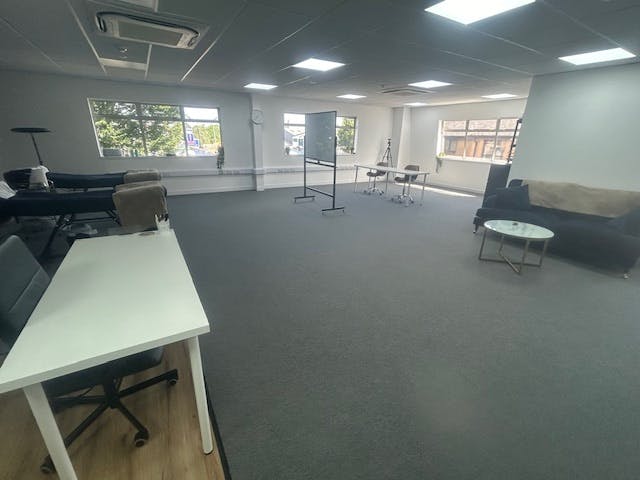 The ground floor provides open plan space and 2 toilets. The space is fully carpeted and has a full suspended ceiling with integral LED lighting. Heating and cooling is via a ducted electric air handling system. Around part of the space is low level dado trunking. There is a fitted kitchen area as part of the open plan space.