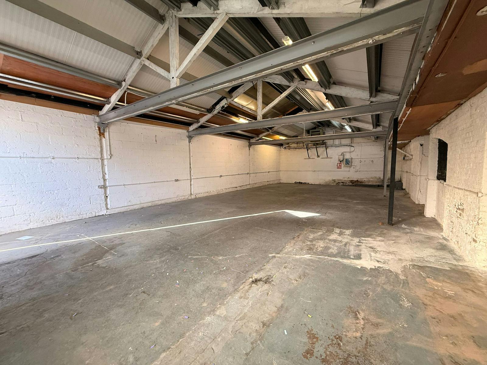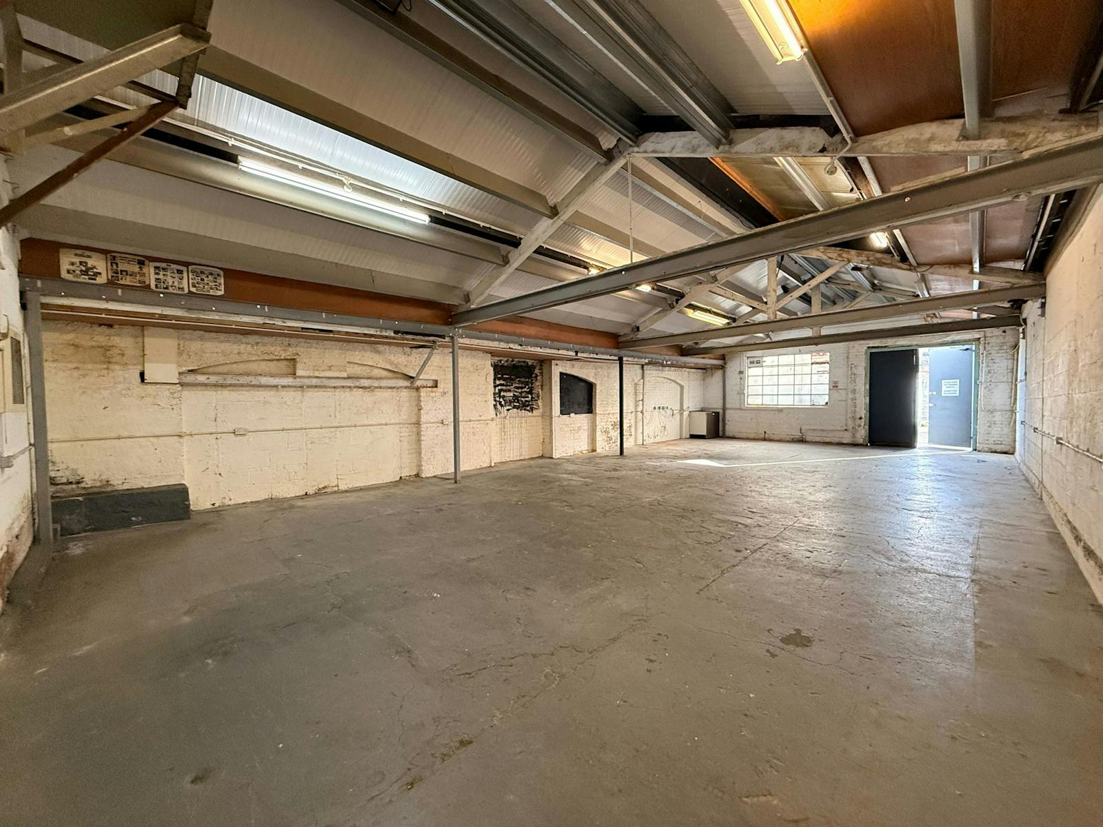 The available accommodation comprises a self-contained ground-floor unit arranged as an open-plan space with impressive ceiling heights and durable concrete flooring. The clear-span layout, with no internal pillars, provides flexibility for storage, machinery, and operational workflow. The unit is also equipped with a water supply and gas heaters, making it suitable for a variety of industrial uses throughout the year.