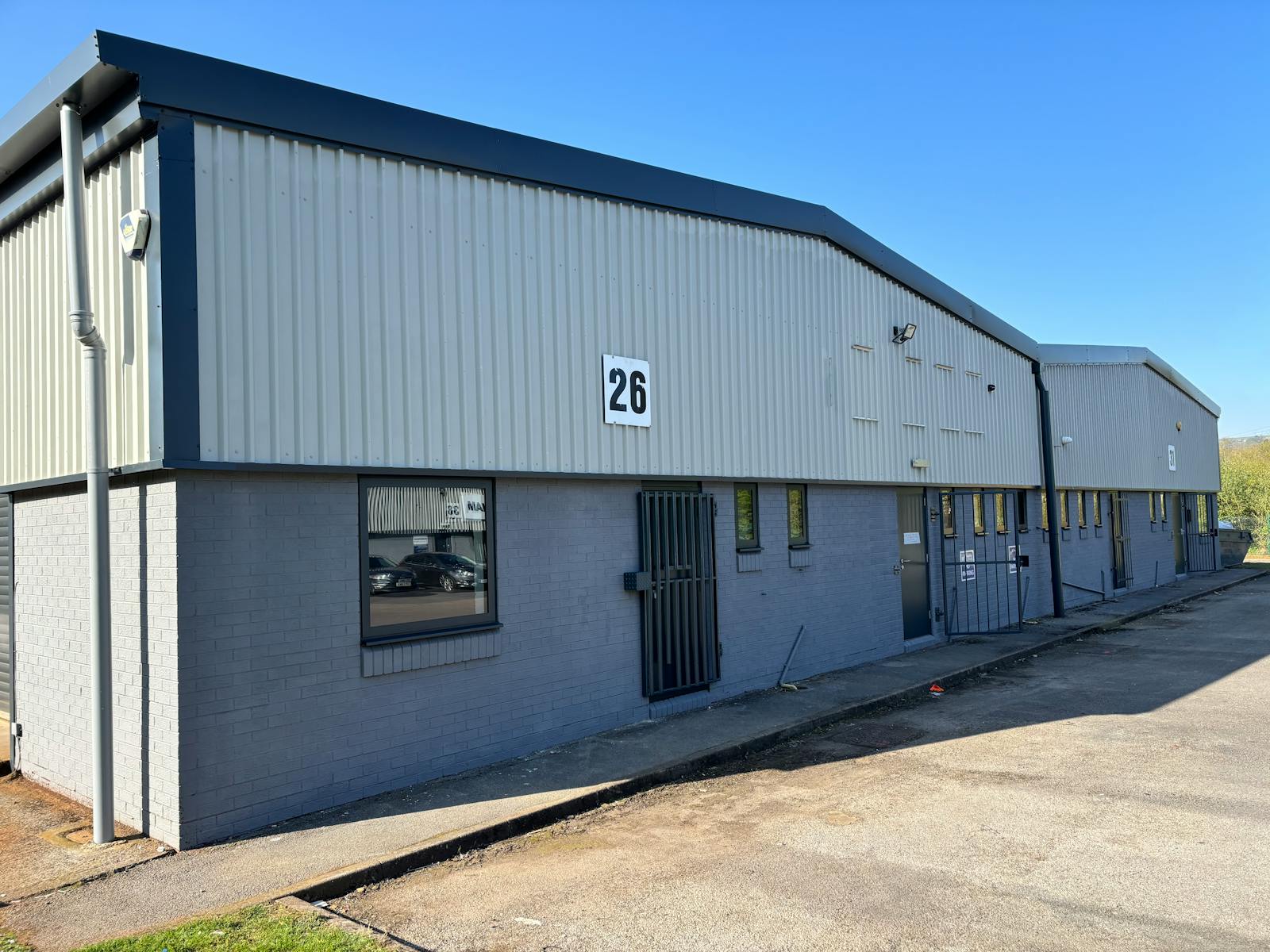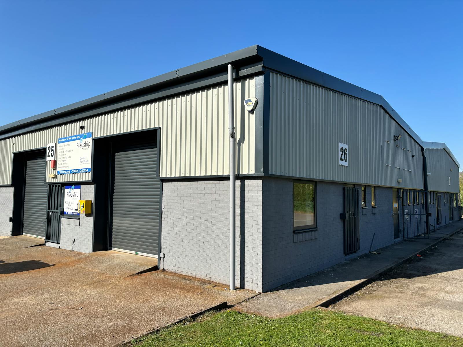 These units comprise of a steel portal frame construction with part brick/blockwork, part metal clad elevations under a pitched roof.