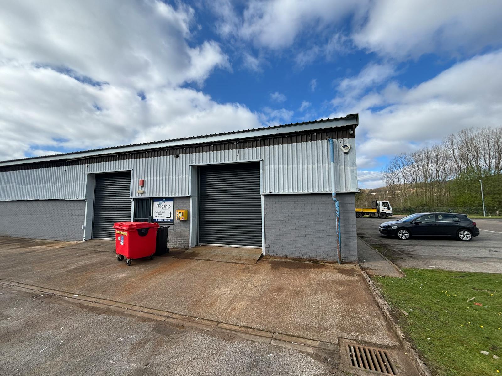 With open plan workshop / warehouse accommodation, roller shutter door, LED lighting and dedicated parking with additional communal parking.