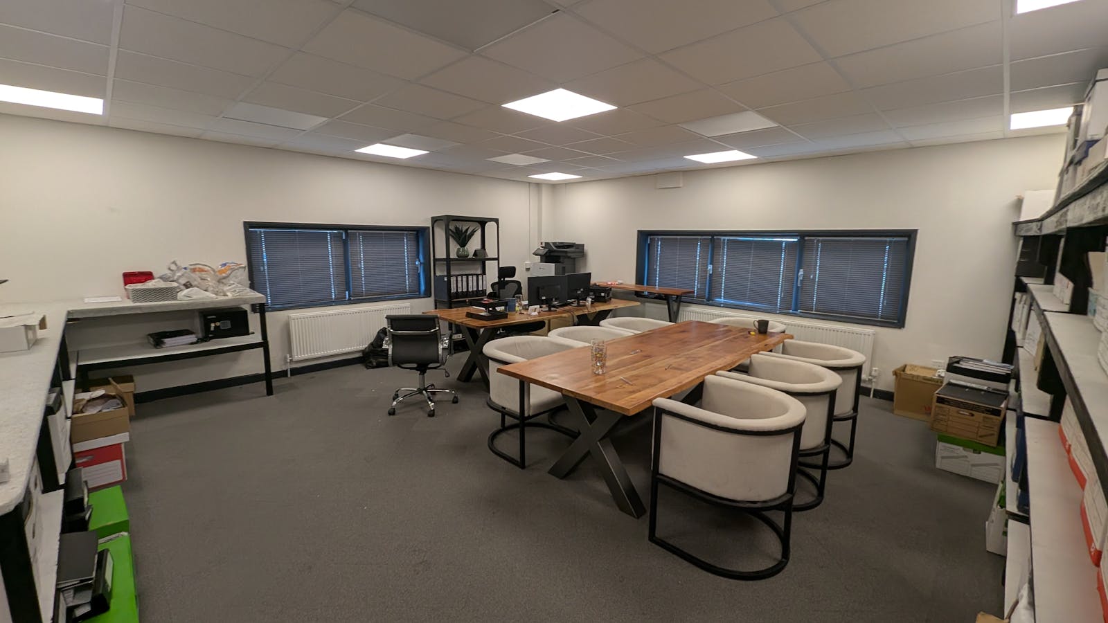The ground floor provides warehouse storage, offices and showroom. Access into the warehouse is provided by 2 x vehicle access loading doors each of approx. 3.5m wide x 4.5m height. Eaves height to the underside of the first floor level is approx. 2.87m.