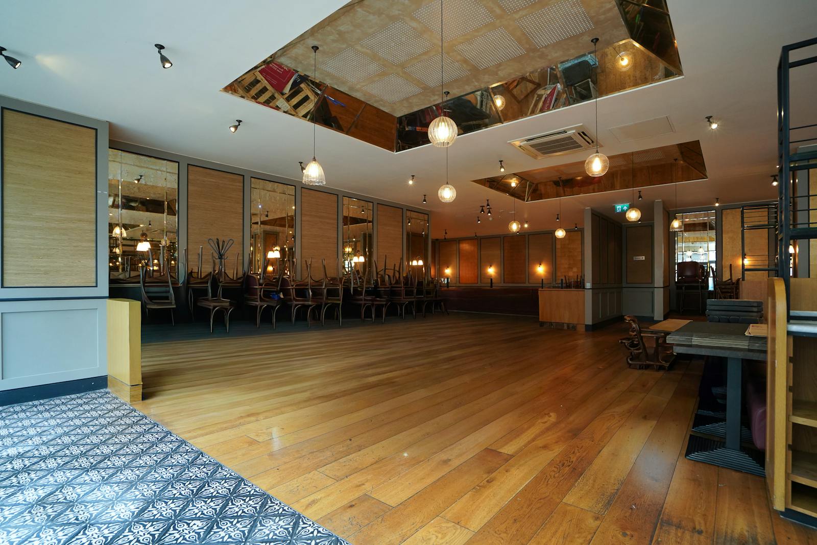 Bar area, kitchen service area and kitchen, WC’s, stores, open plan seating area, lighting throughout and air conditioning.