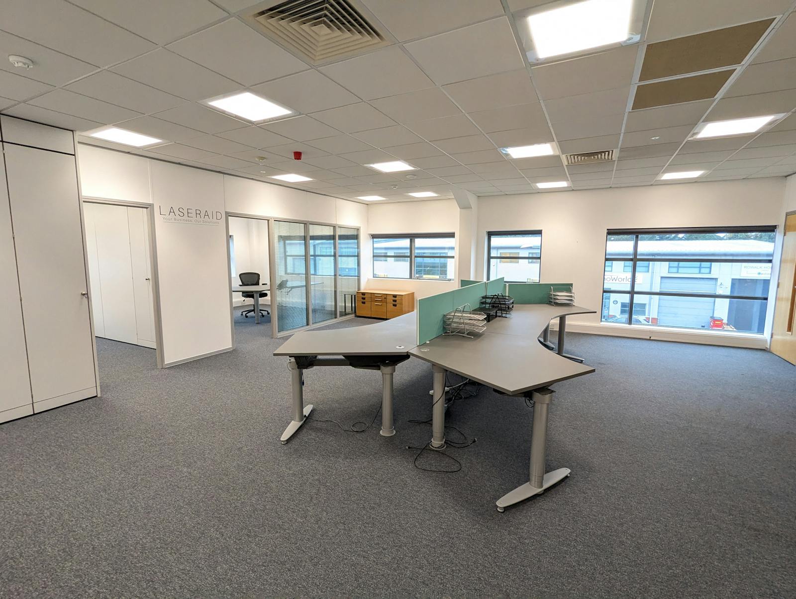 A modern self-contained two storey office unit currently partioned to give a flexible layout benefitting from 5 car parking spaces. The space benefits from air conditioning, two W/C’s and two kitchenette's.